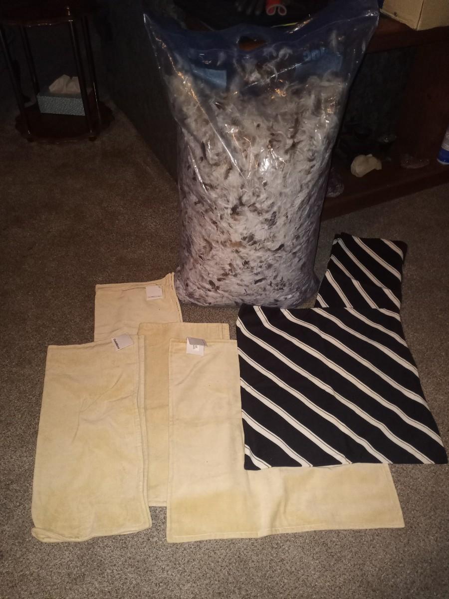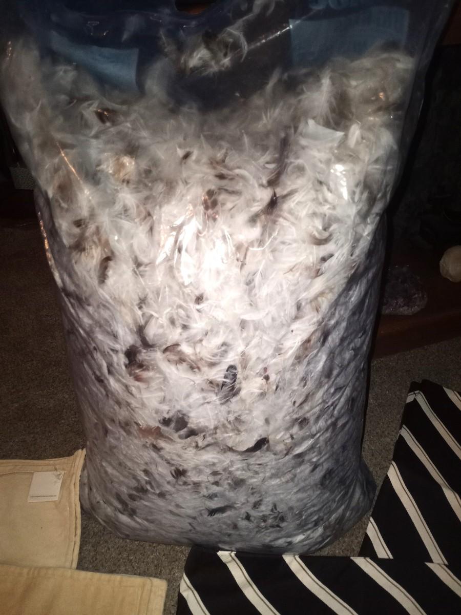 LARGE BAG OF DOWN FEATHERS & ZIPPERED PILLOW SHAMS TO FILL
