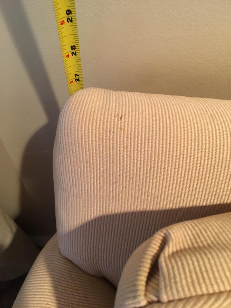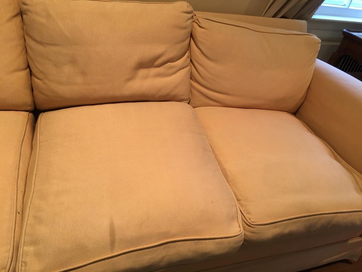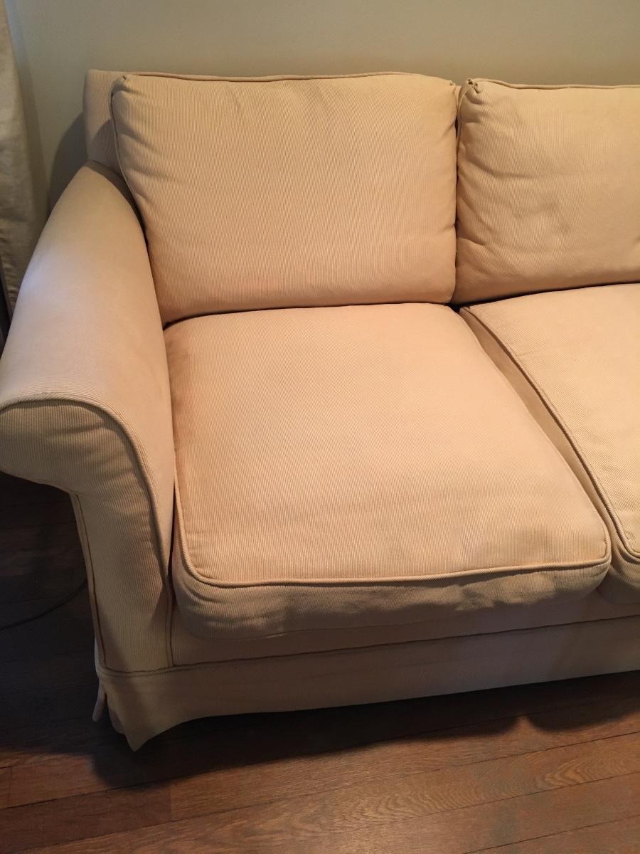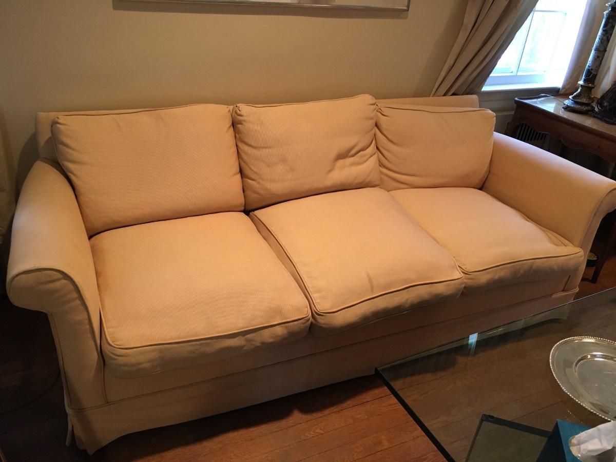 Very comfortable down filled sofa. Used, but no signs of damage, stains or tears.