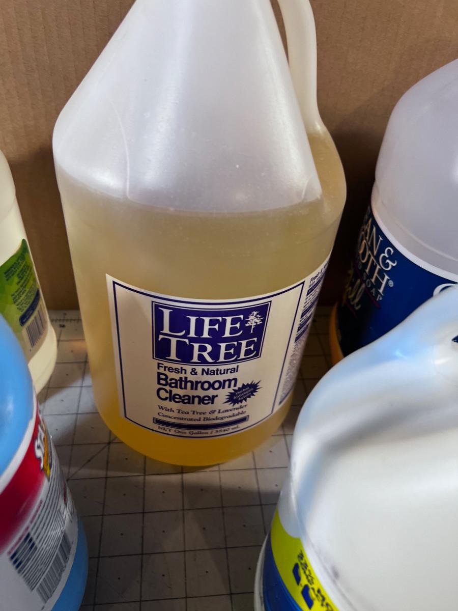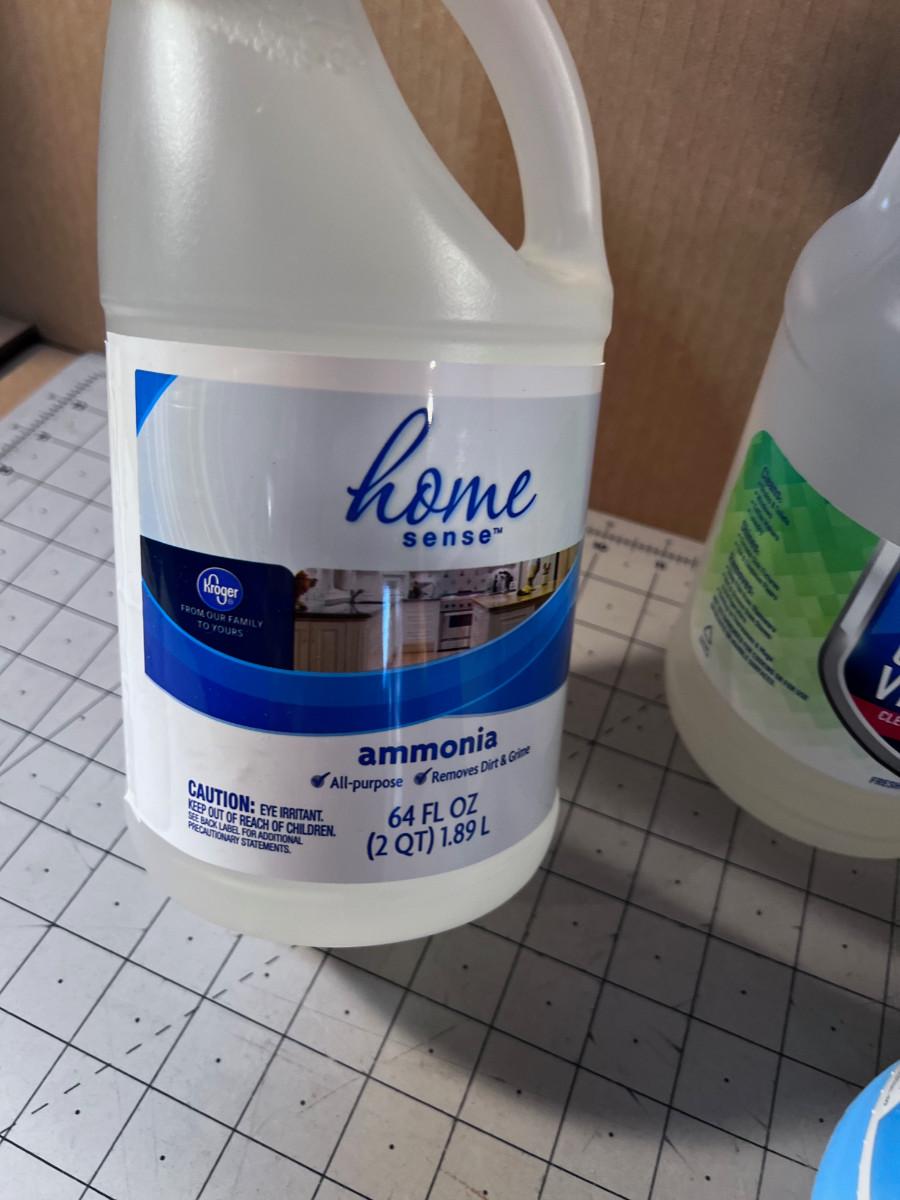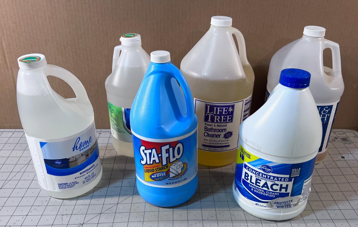 Down Stairs - Jugs of Cleaning Product: Ammonia, Bleach, Liquid Soap etc.