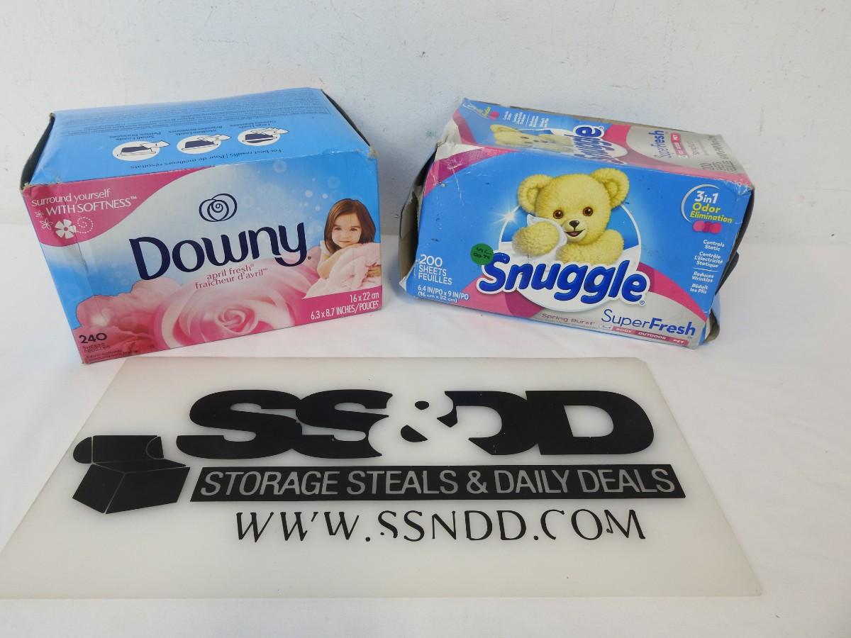 Downy Dryer Sheets Fabric Softener Qty 240 & Snuggle Qty 200. Damaged Box - New
