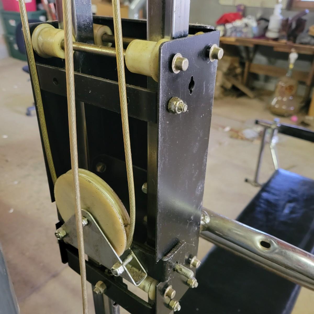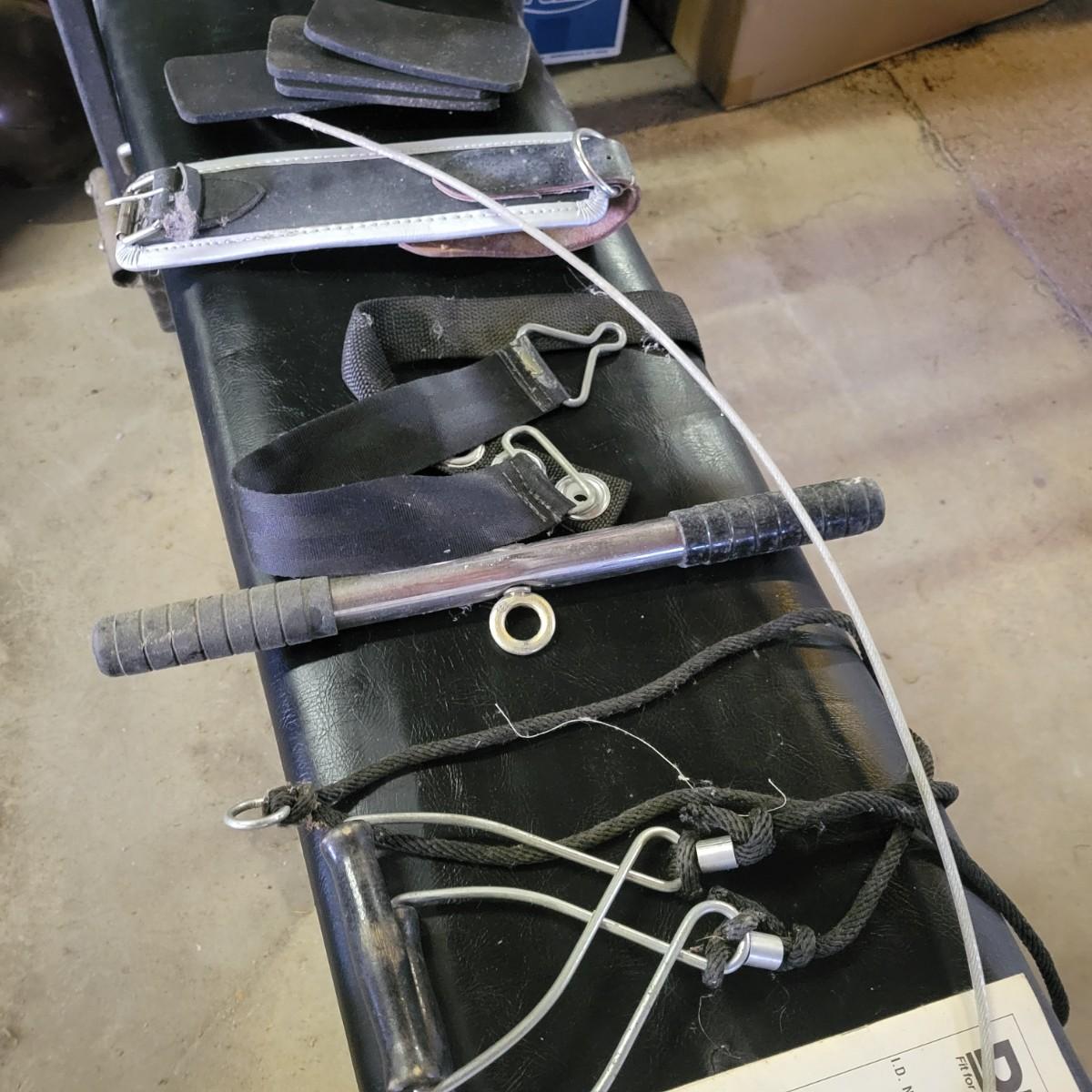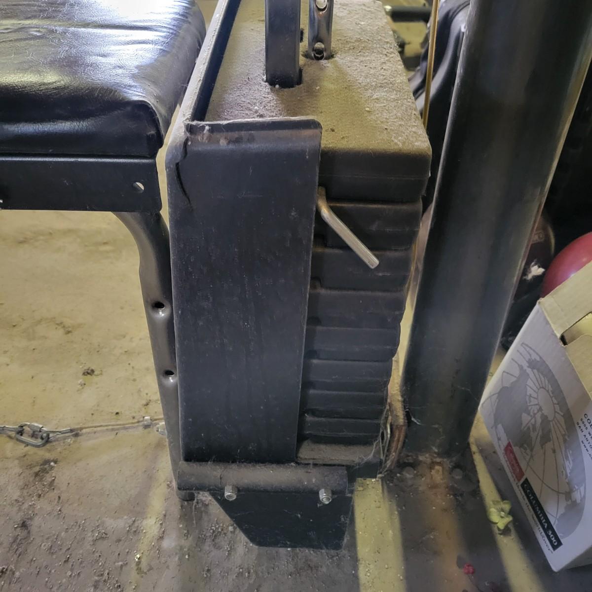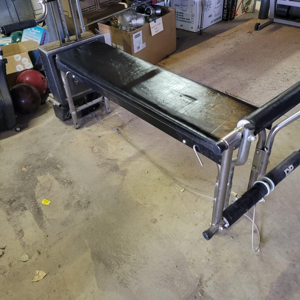 A DP Gympac 1000 fitness system that works as it should, but likely needs some adjustments. This fitness system has eight weight plates that are 11lbs each. This system will allow for a wide range of exercise options from upper to lower body. It also includes a number of accessories. Measures approximately 37" x 61" x 84.5"H. Winning bidder will need to bring a cresent wrench to remove two bolts securing it to a metal pole. Local pickup only. Winning bidder must bring assistance to help move and load this item due to its weight and/or size.