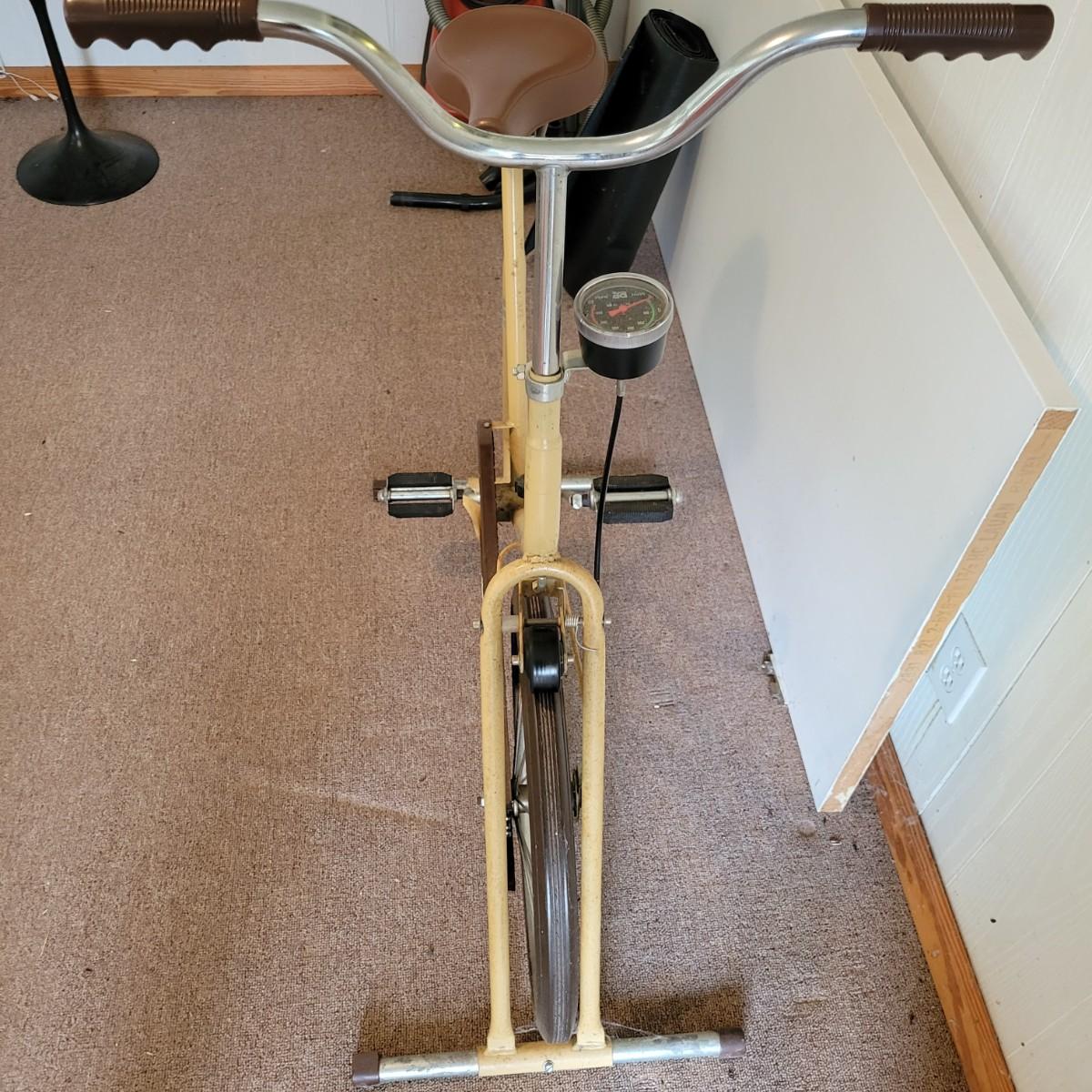 A DP Pacer 200 exercise bike that works as it should. It has a tension wheel at the front to create resistance, an adjustable seat and handlebar. The frame is made of metal. It measures approximately 40" x 24" x 44"H. Local pickup only
