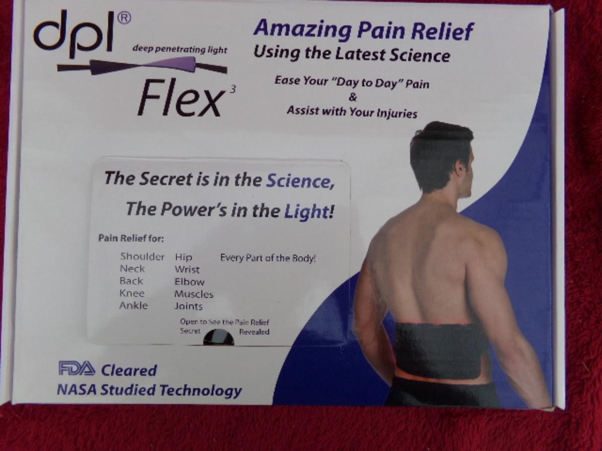 “dpl” pain relief belt w/LED lights. Appears to be intended to strap around your body. Uses LED light to relive pain. Doesn’t look used but can’t be certain. In OEM box. NO instructions.