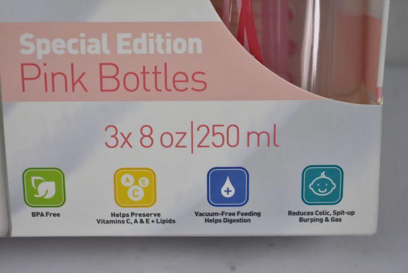 Dr. Brown's Original Baby Bottles, 8 Ounce, Pink, 3 Count, $20 Retail - New
