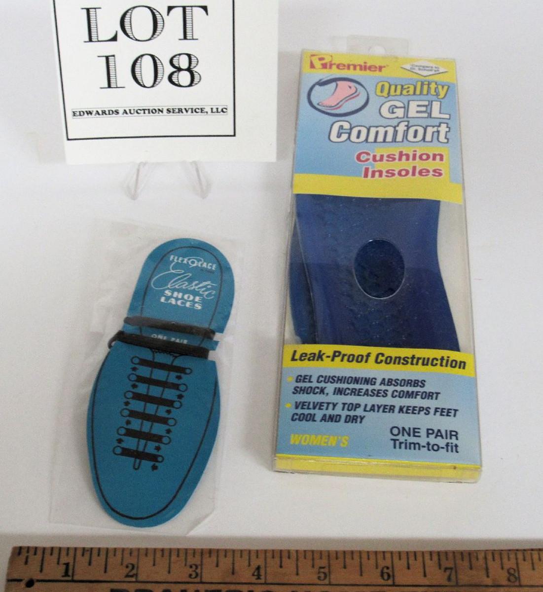 Dr Scholl's Gel Insoles, Ladies, and Flex-o-Lace Elastic Shoe Laces, Never Used