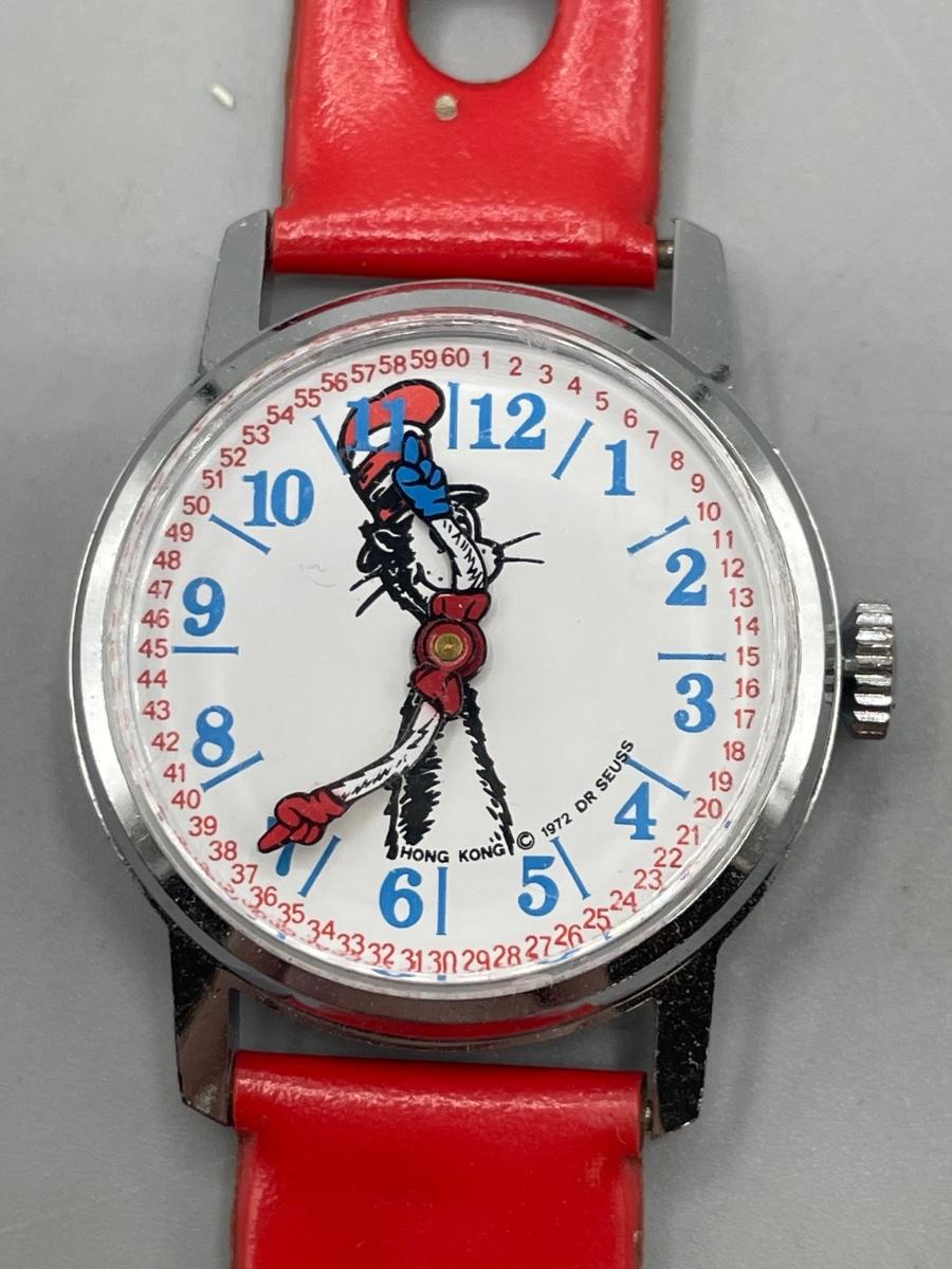 1972 Dr. Seuss Cat in the Hat Wind Up Child's Watch WORKING