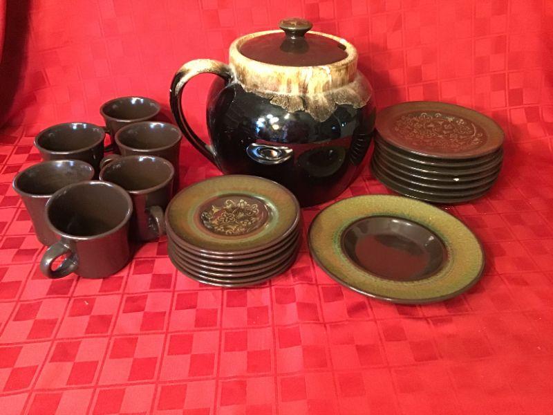 DR#117 - Bean Pot and brown/green dishes