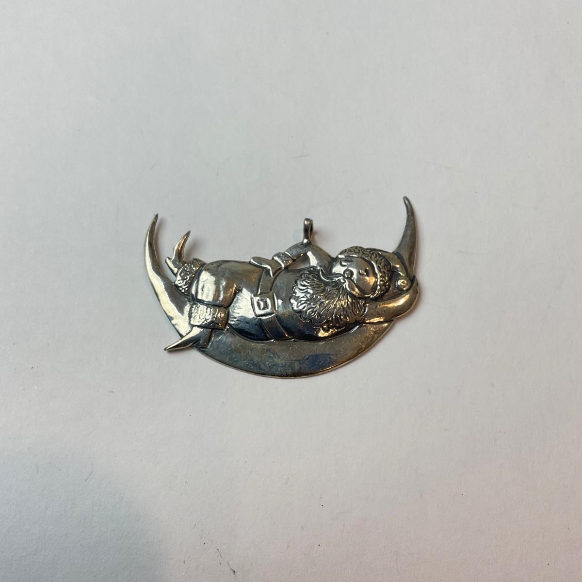 DR1375 Vintage Hand & Hammer Sterling Santa on the Moon Ornament