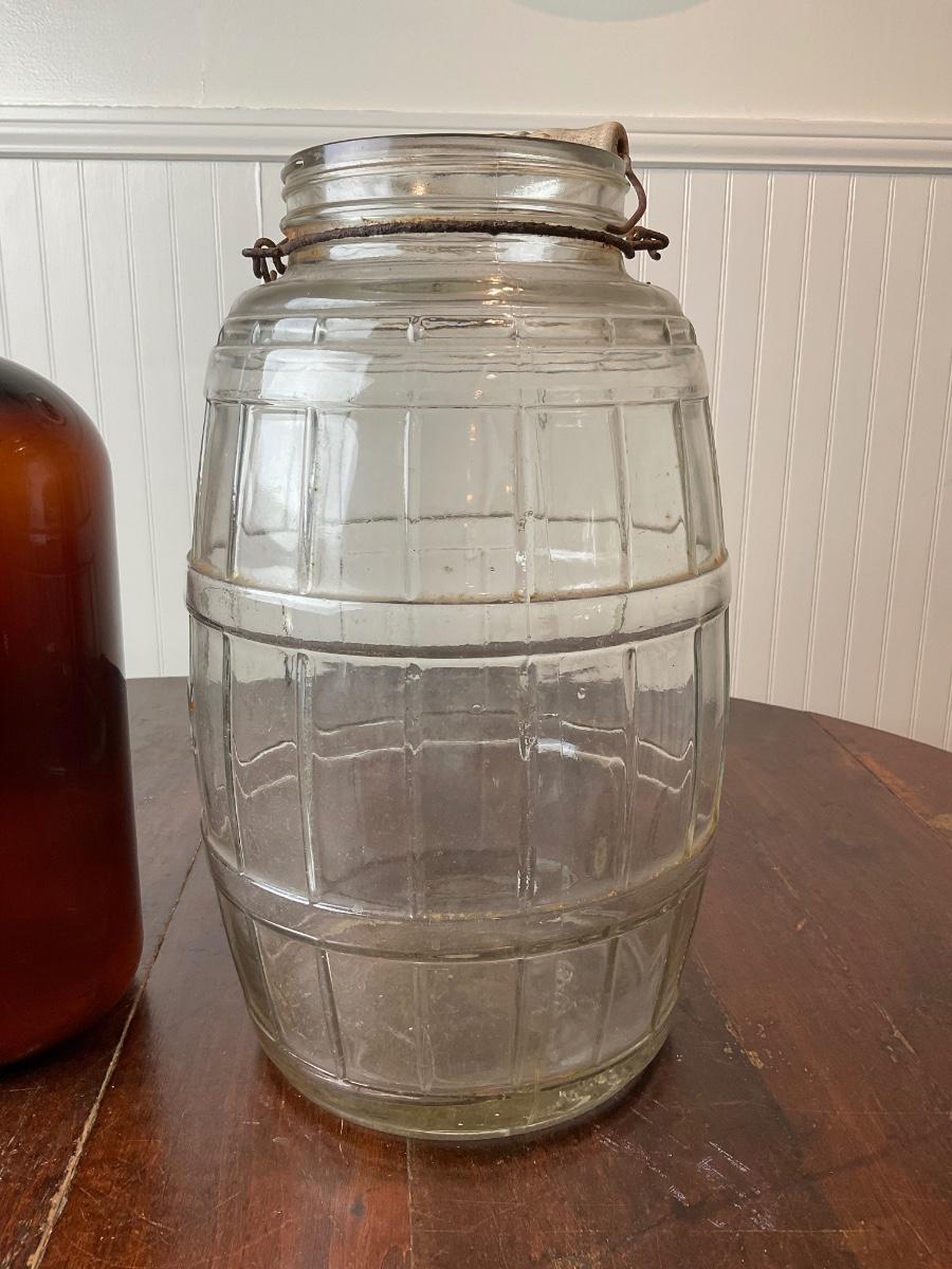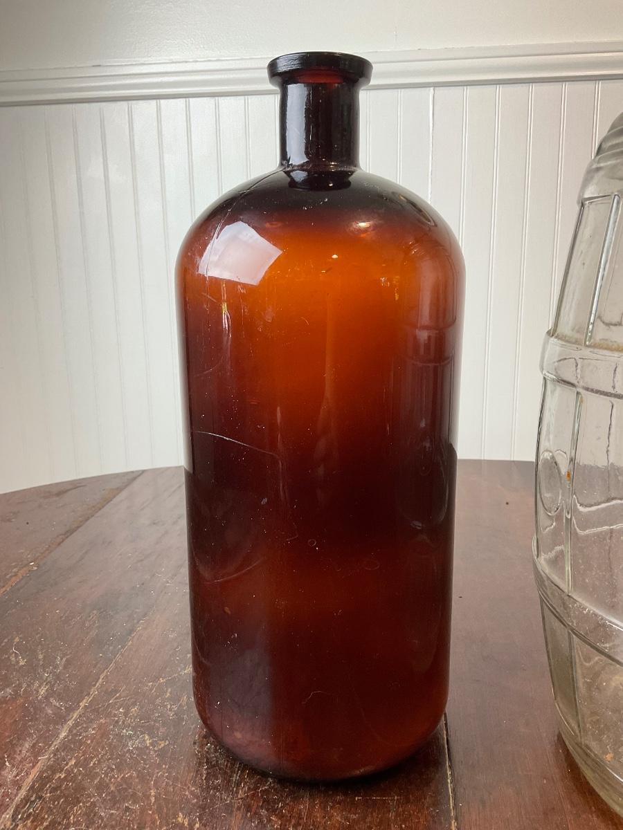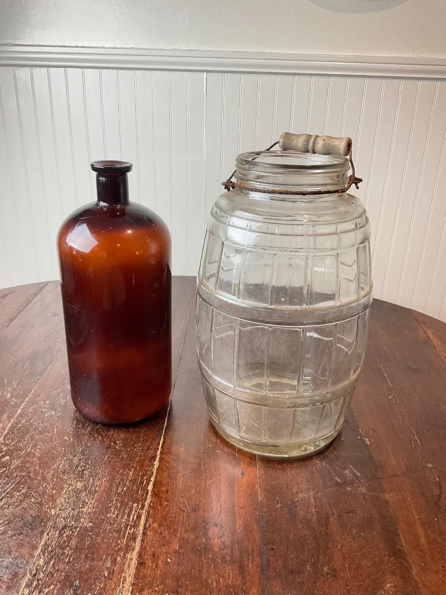 DR1410 Large Glass Barrel Jar with Brown Apothecary Bottle
