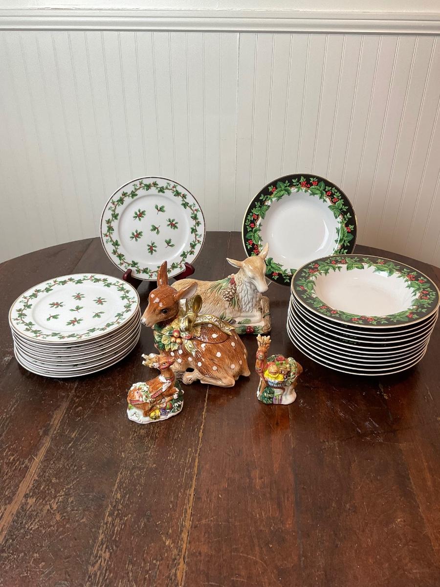 DR1420 Waverly Christmas Plates and Fitz & Floyd Butter and Jar