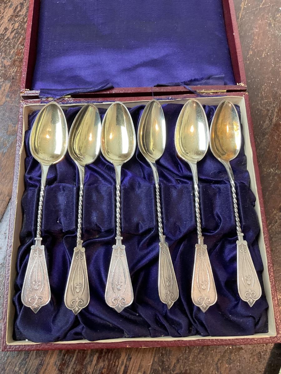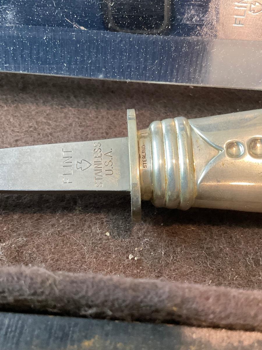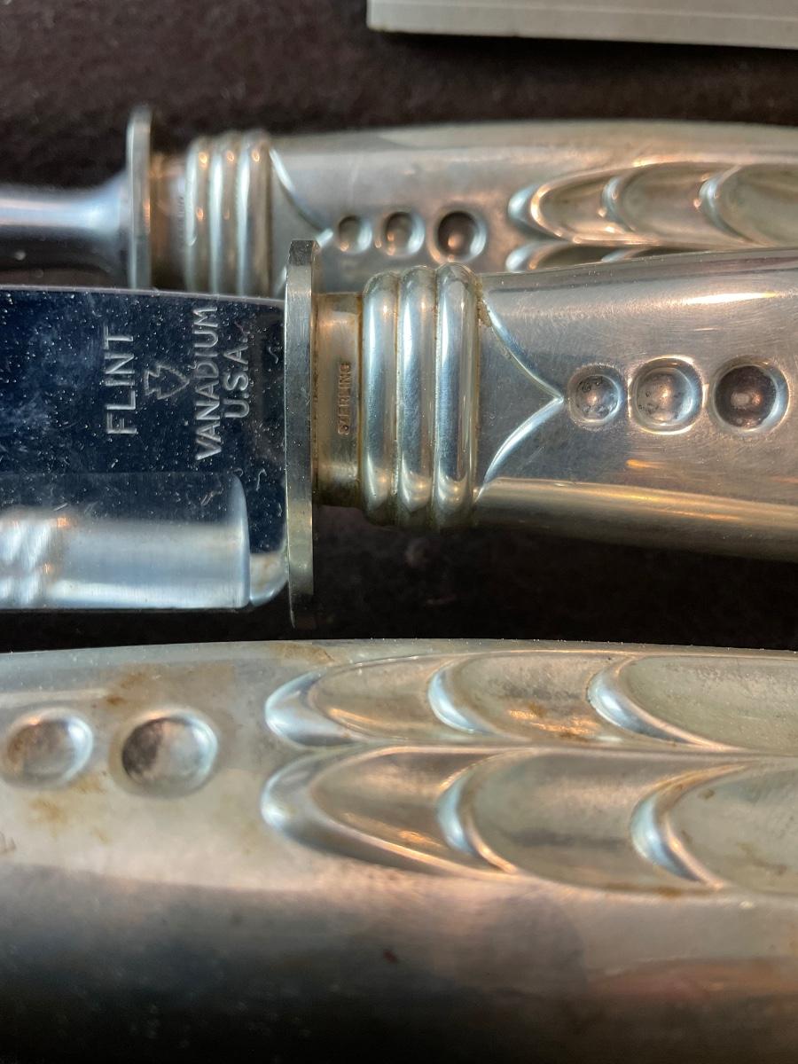 Regent Sheffield knives in box, small spoons, cocktail forks