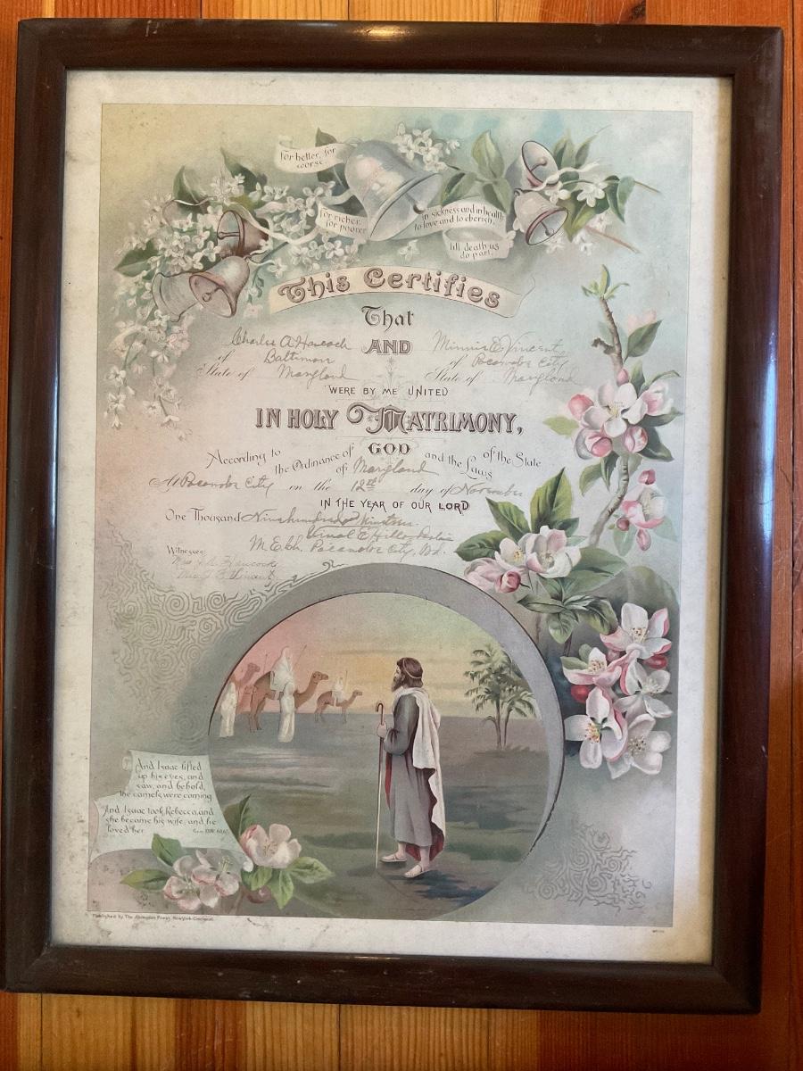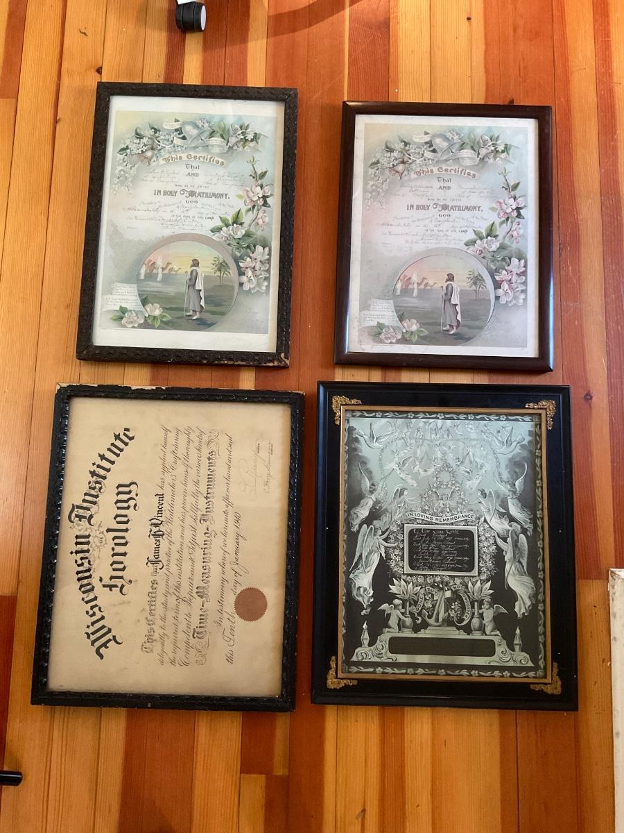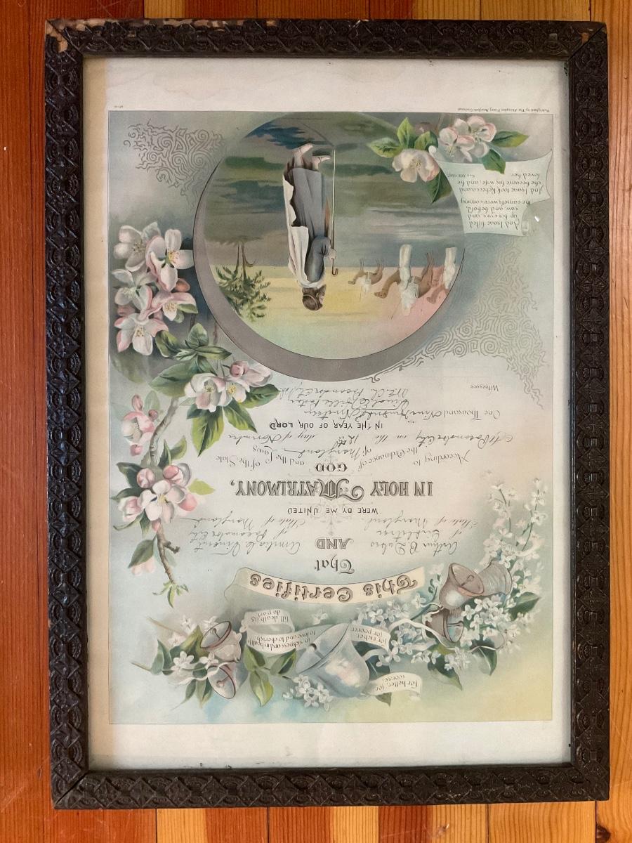 DR1436 Four Antique Framed Marriage Certificates Ephemera