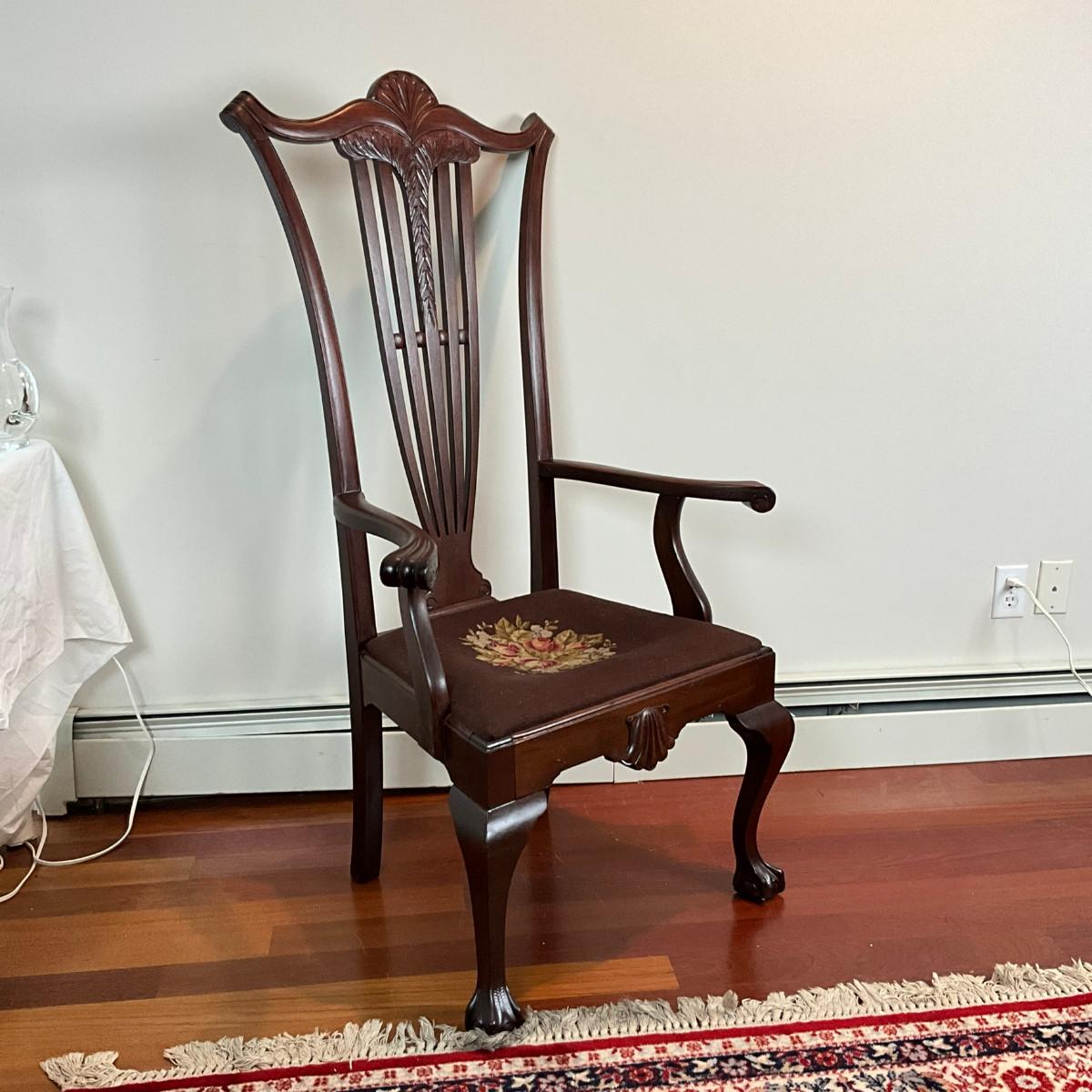 L457 Antique Tall Back Chippendale Arm Chair