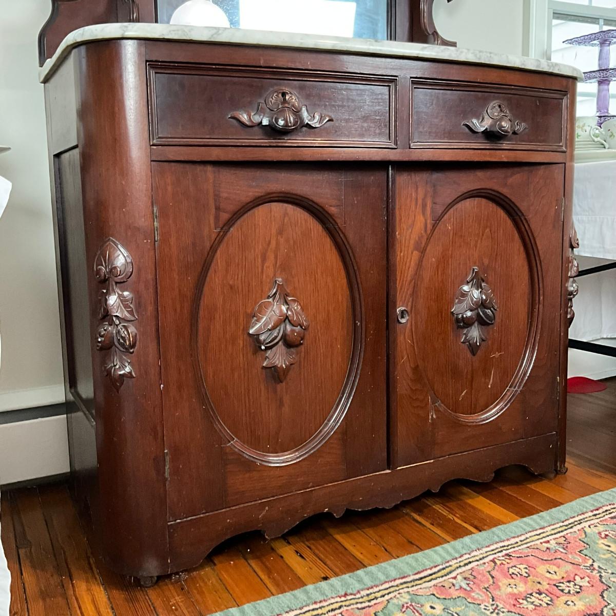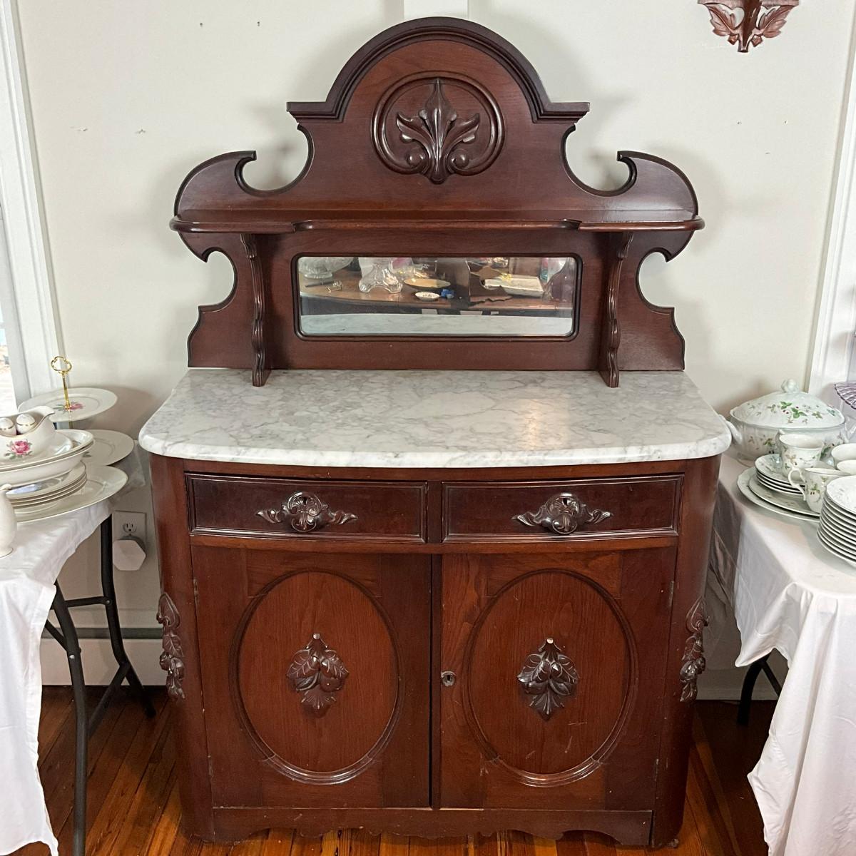 DR458 Antique Marble Top Victorian Buffet Cabinet