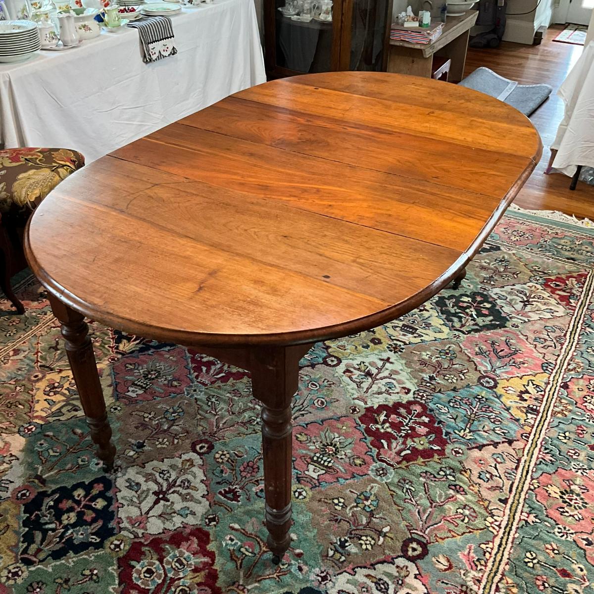 Table: 77"L extended, 44" diam. closed in x 42"W