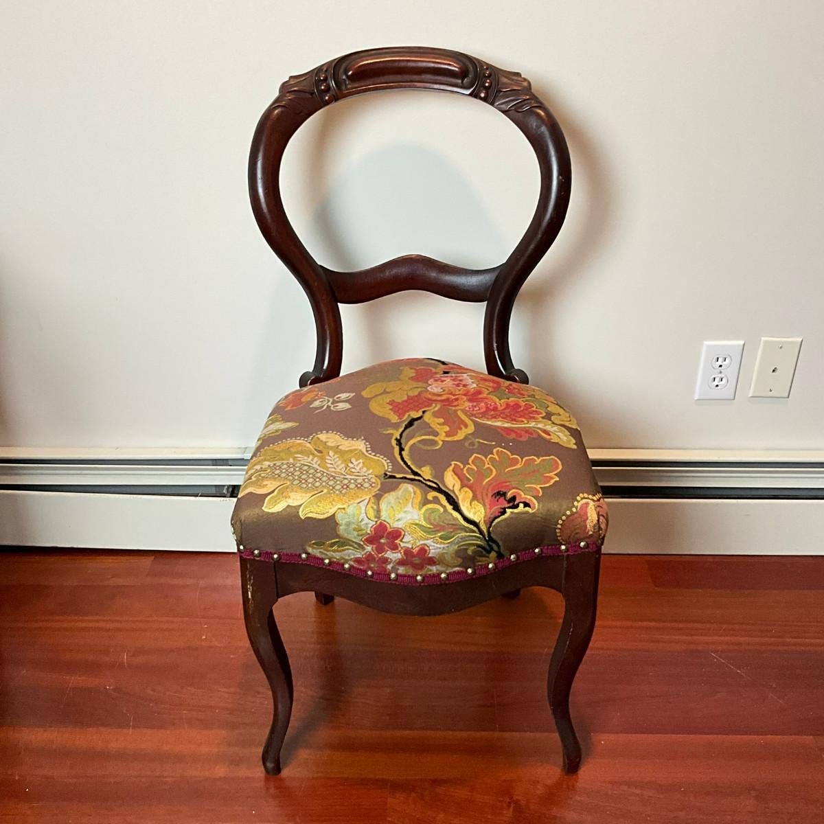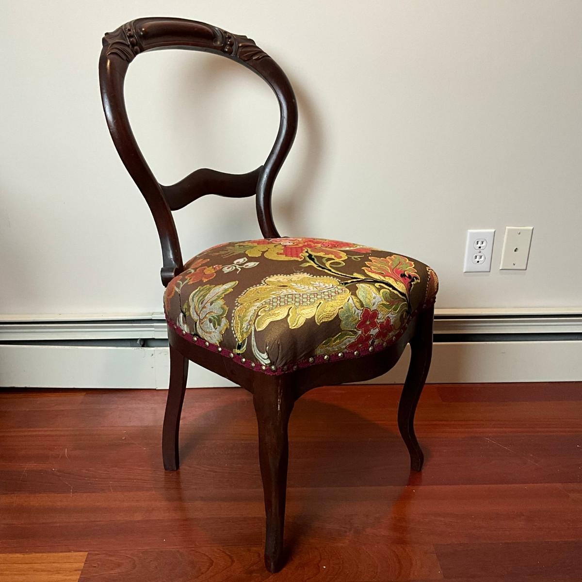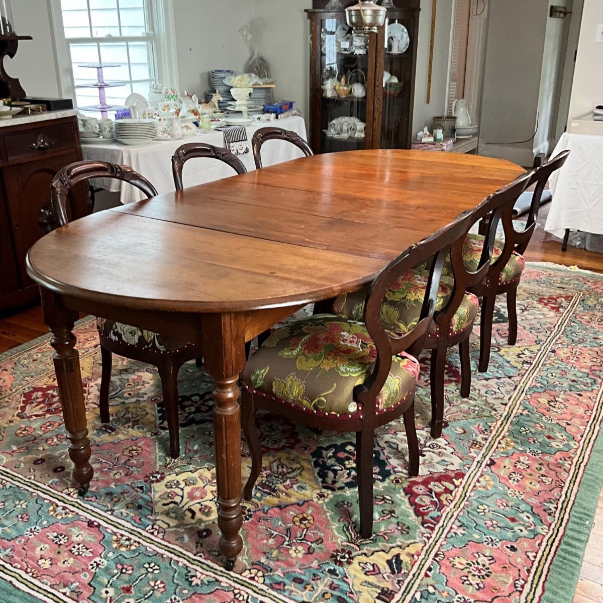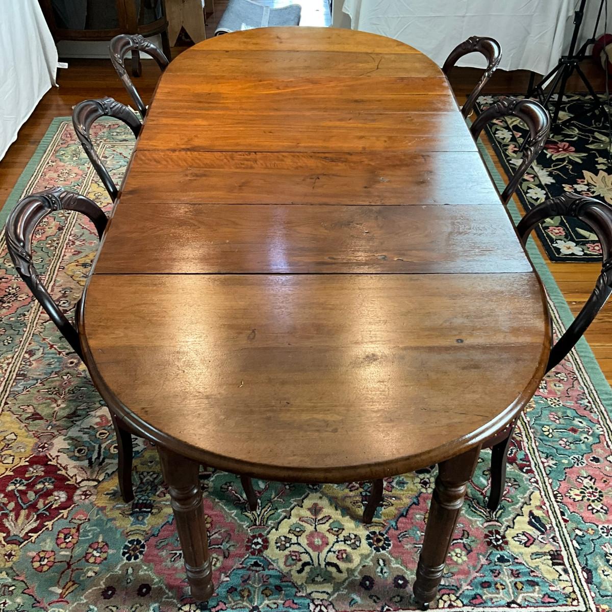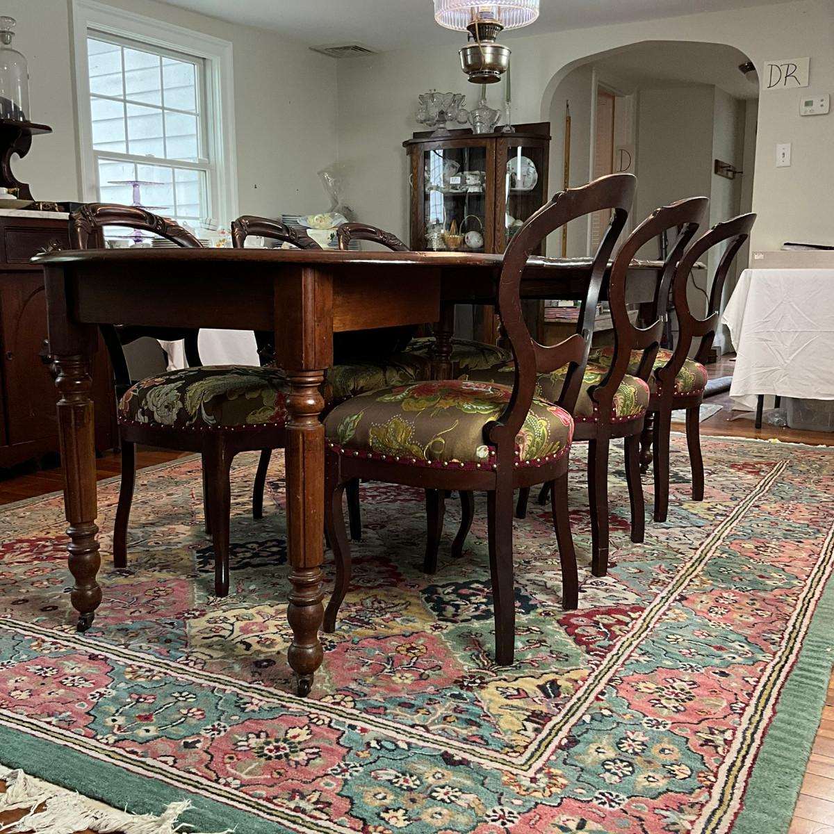 DR465 Antique Mahogany Dining Room Round Table with 6 Antique Balloon Back Chairs