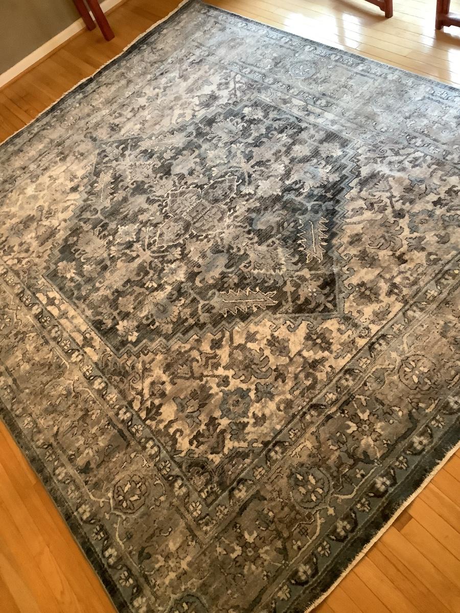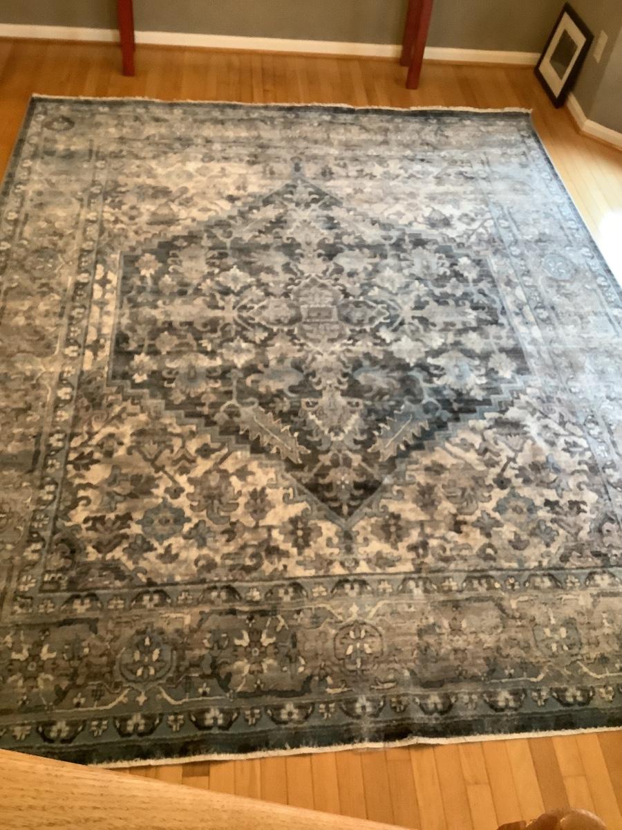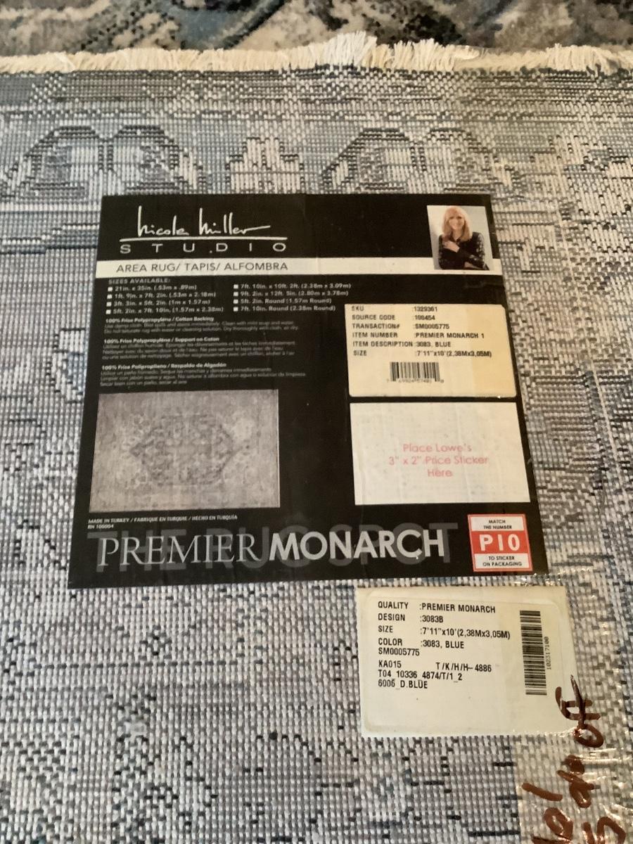 very good condition blue area rug by Nichole miller, Monarch