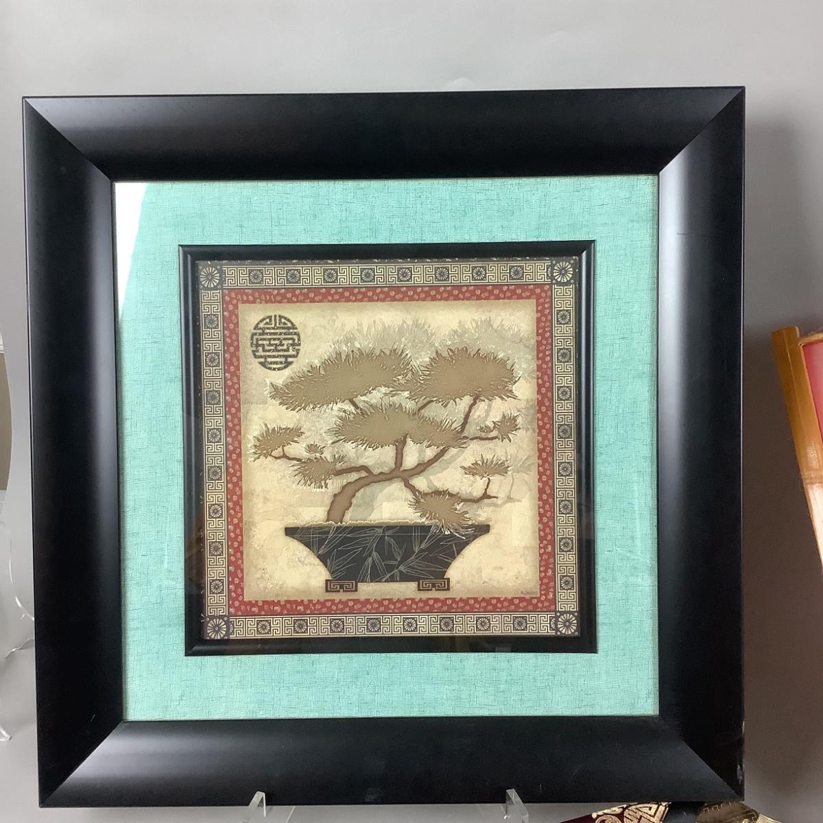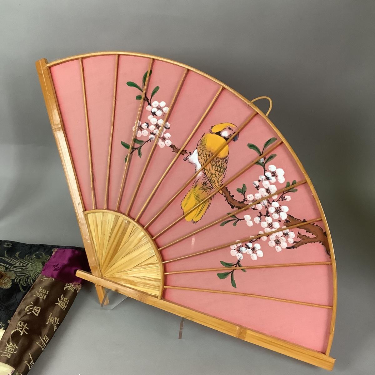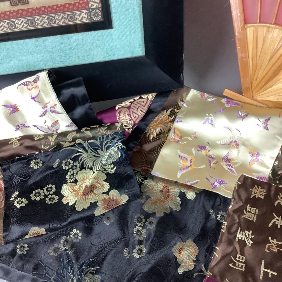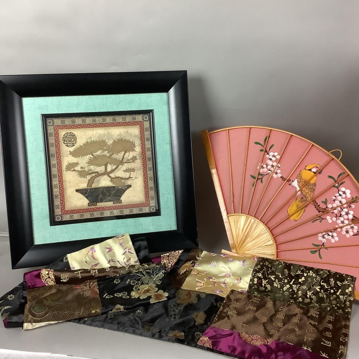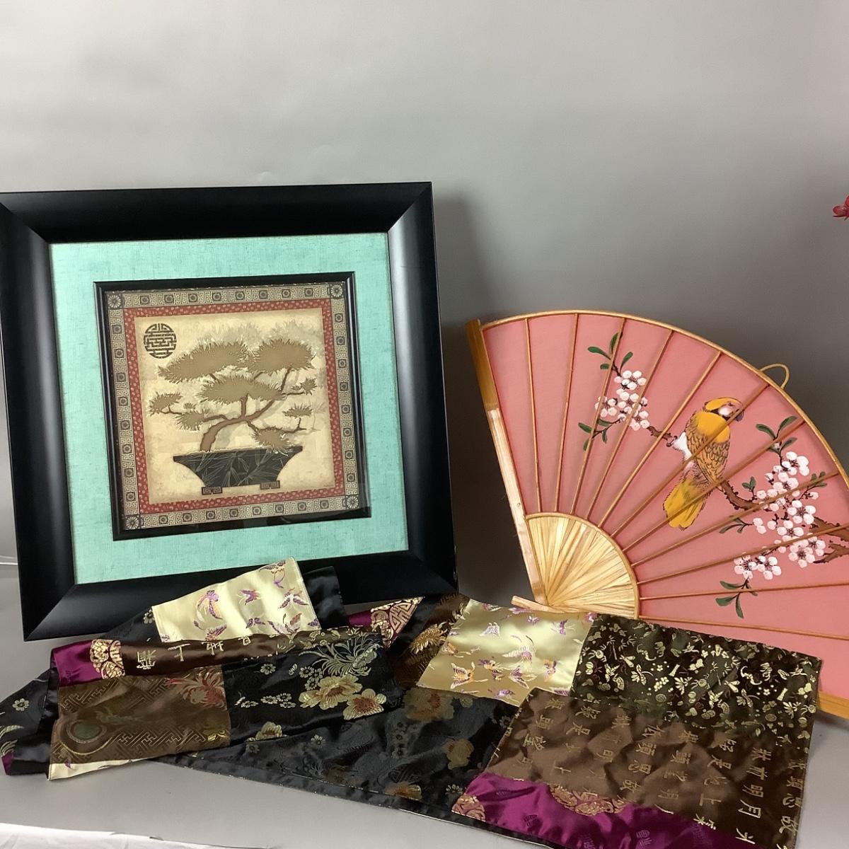 Pier One Oriental Table runner, Handpainted Fan, Oriental Print 20” square