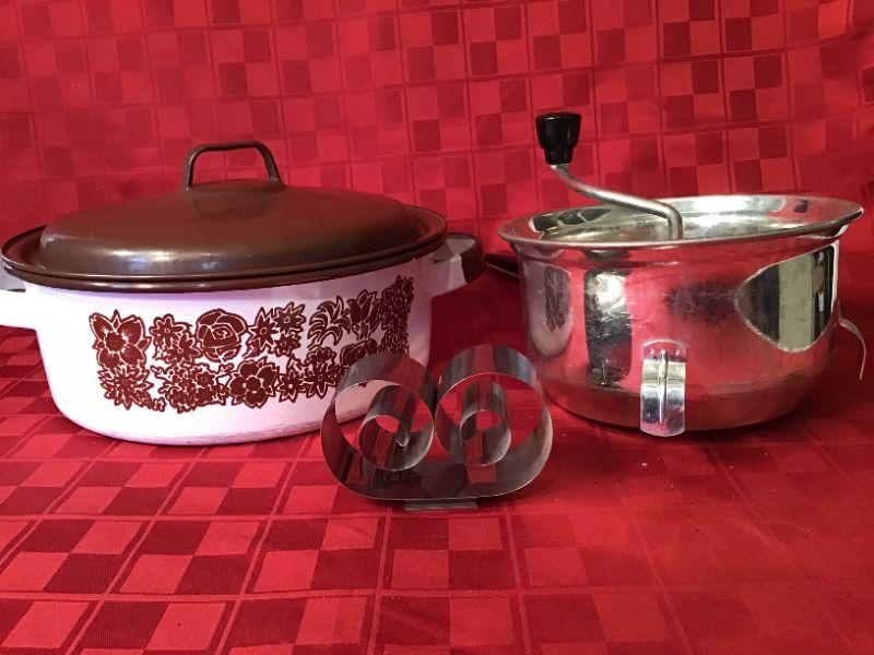 DR#87 - Potato Masher, Enamelware pan & recipe holder(?)