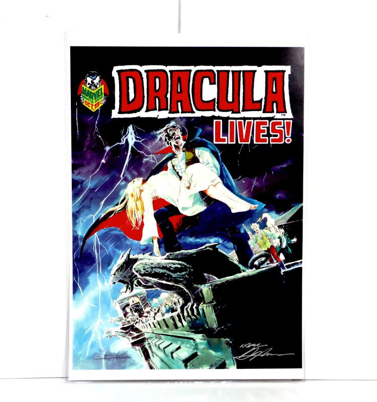 Original Comic Art Print hand signed by artist Neal Adams, featuring Neal Adams cover art for Dracula Lives! #3 Marvel Magazine (Marvel, 1973). High quality art print in large size 13" x 19", on high quality heavy stock poster paper, ready for framing, ships flat in safe packaging - Collector's Item!