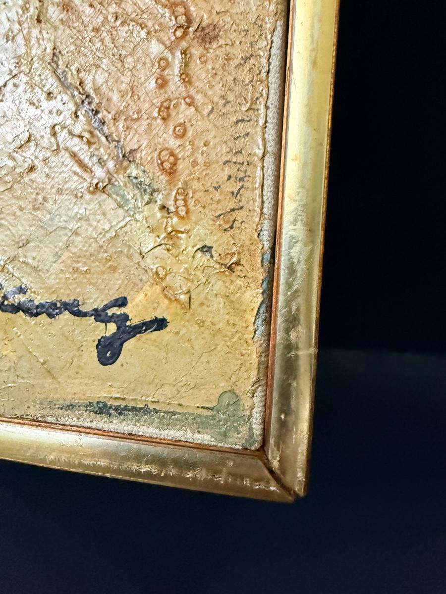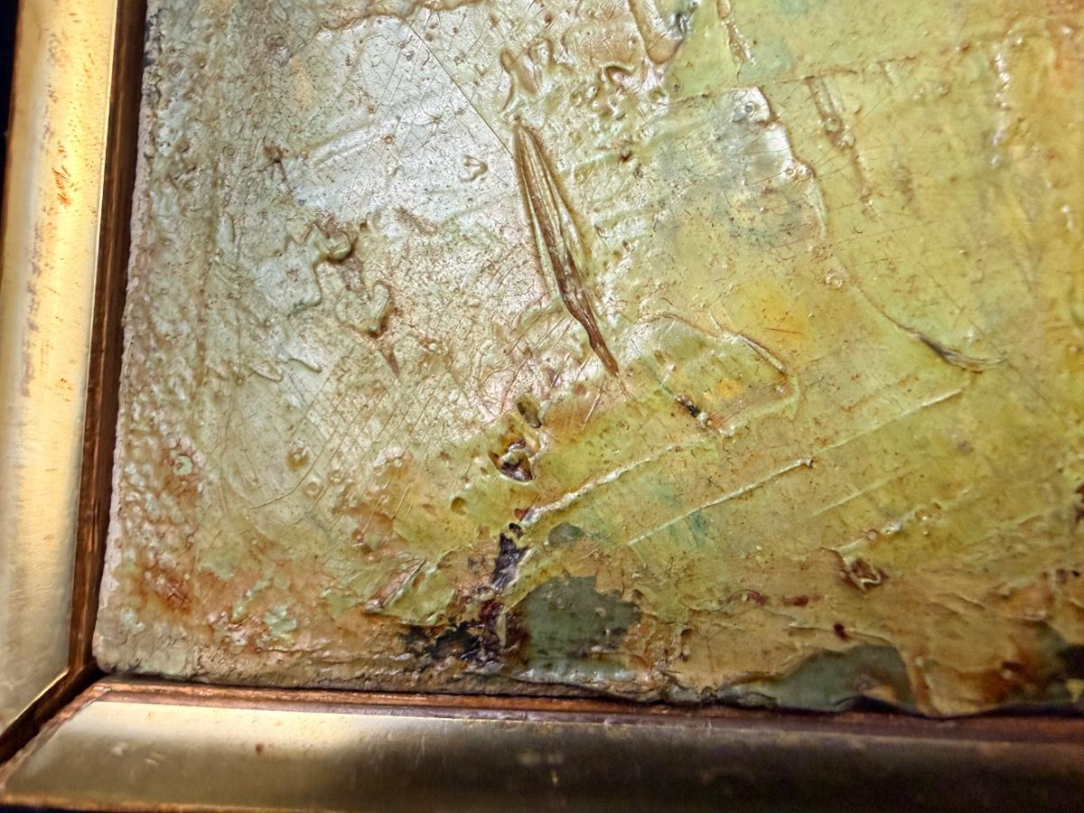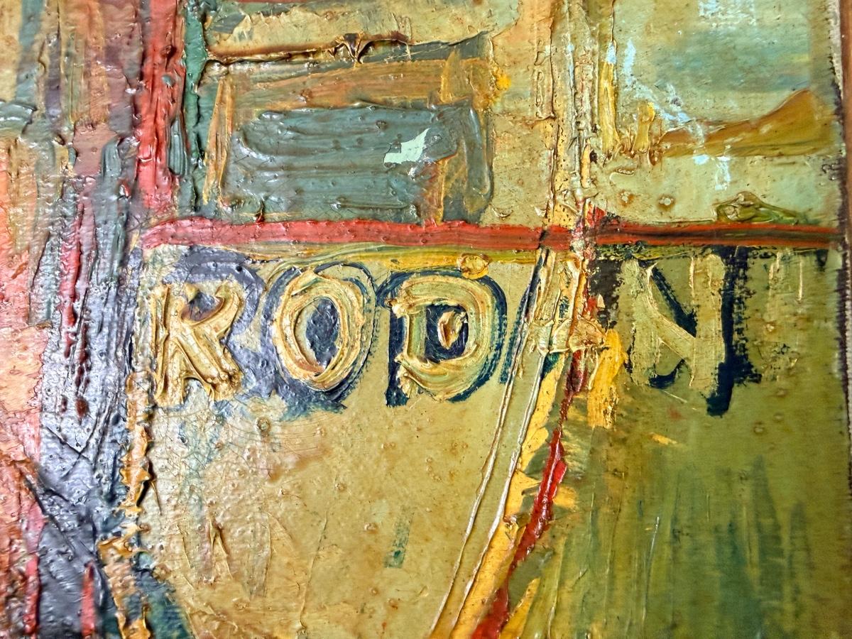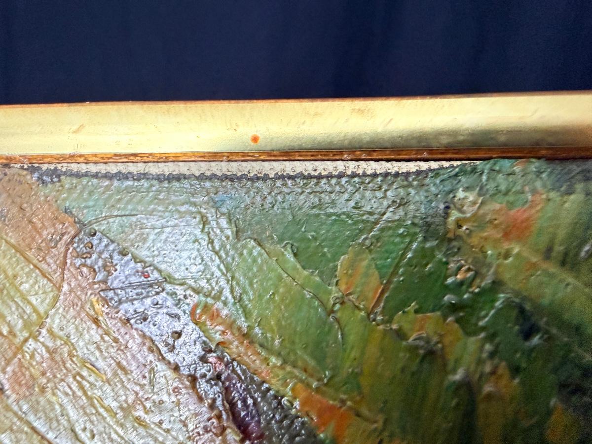 Hsing-Sheng Yang (1938-2013) renowned Taiwanese abstract painting master known for his bold brushstrokes & palette knife techniques. Mid Century piece with VW vans and double decker busses.