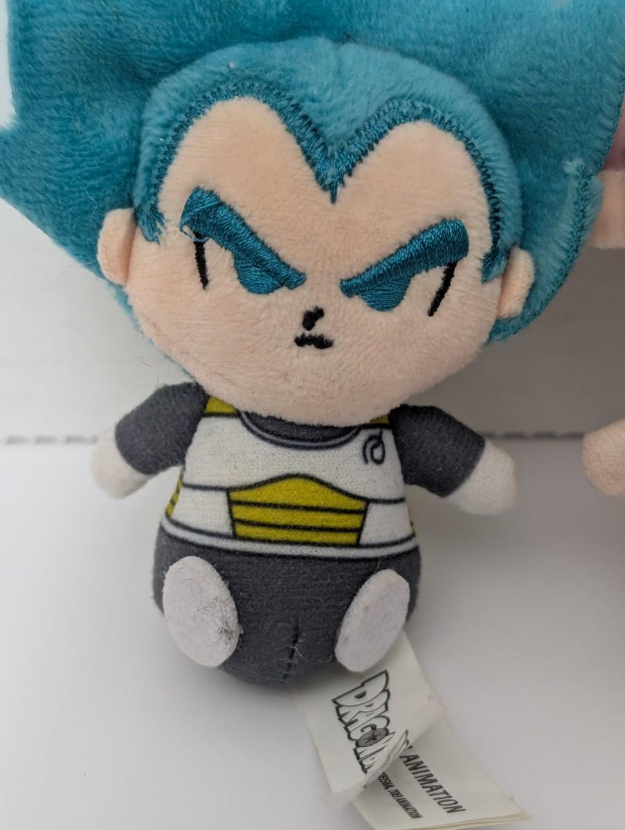 Set of 2 Dragon Ball Super plush characters including Vegeta in Super Saiyan Blue form and Goku Black in Super Saiyan Rose form. Each plush features embroidered details, soft fabric, and original tags. Great collectible set for Dragon Ball Z and Dragon Ball Super fans, perfect for display, gifting, or adding to an anime collection.