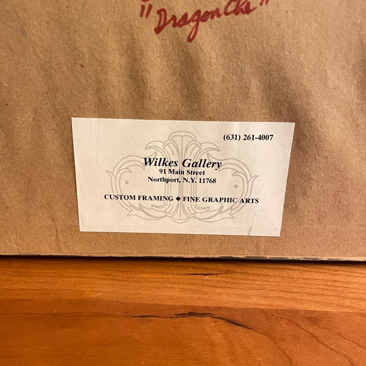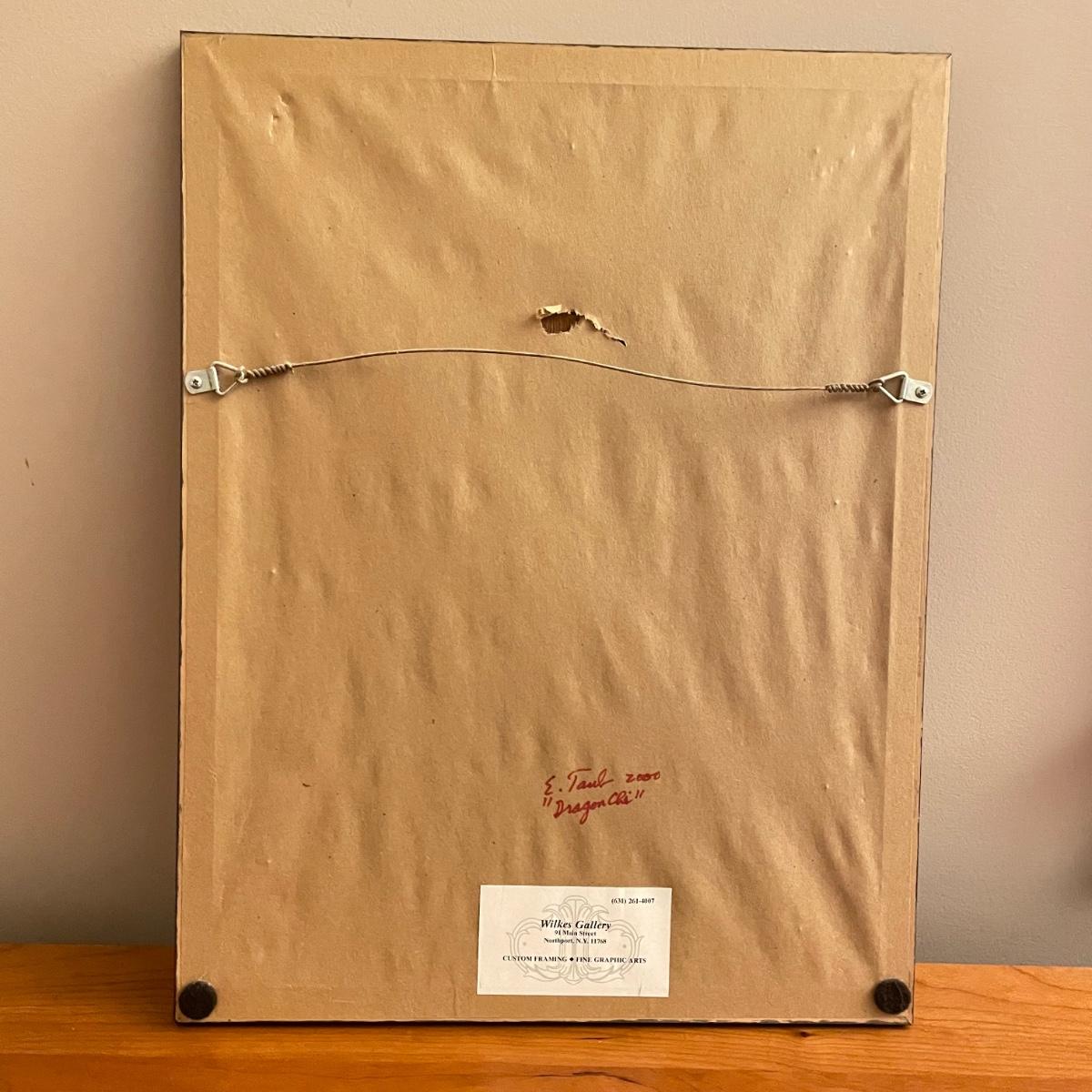 Painted one-stroke dragon titled “Dragon Chi” signed by 'E Taub' on wood. Art is professionally framed in a dark wood frame. Frame measures 13.5” x 17.5”. See images. Shipping available. Shipping can be costly. We suggest contacting our preferred local shipping provider, Postage Express, with dimensions and getting an estimate before bidding: (828) 255-9250 or email shipping@postageexpressnc.com