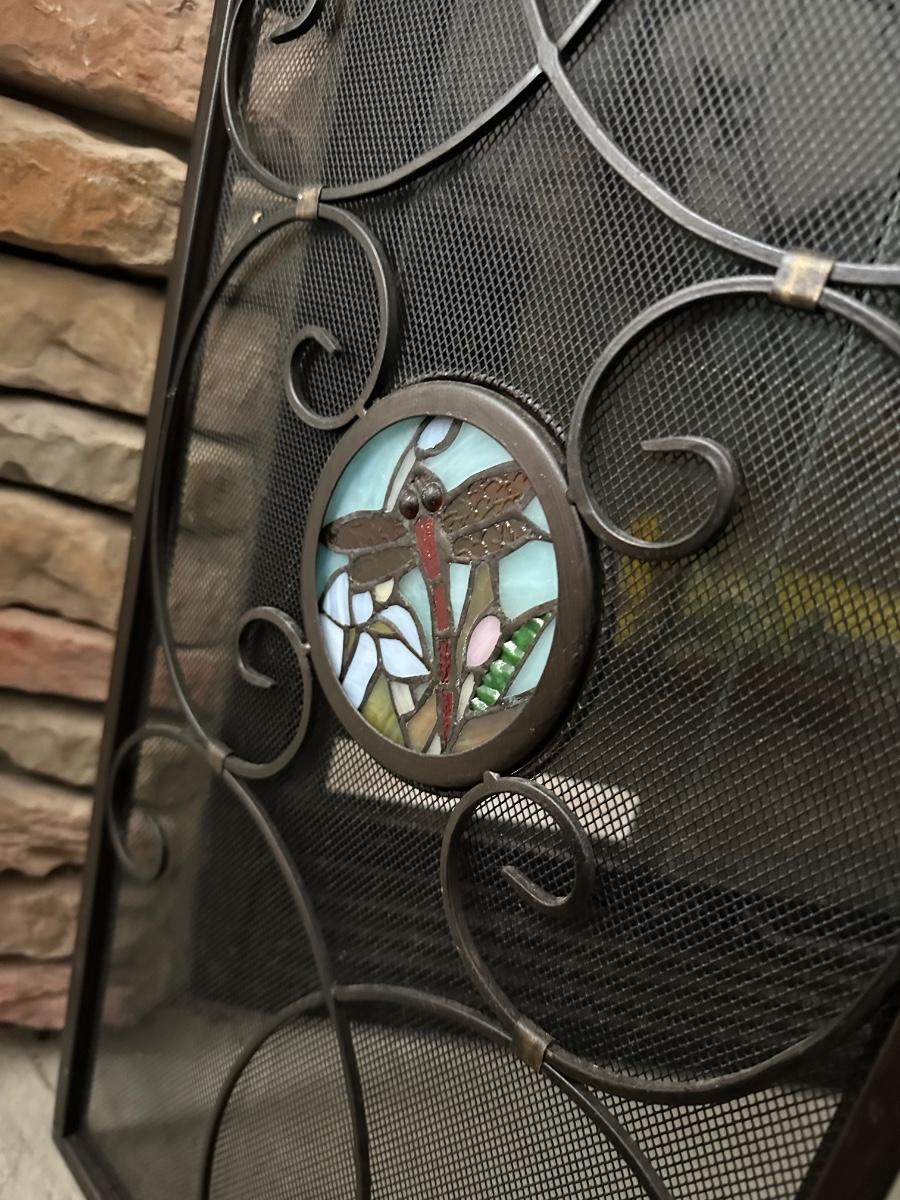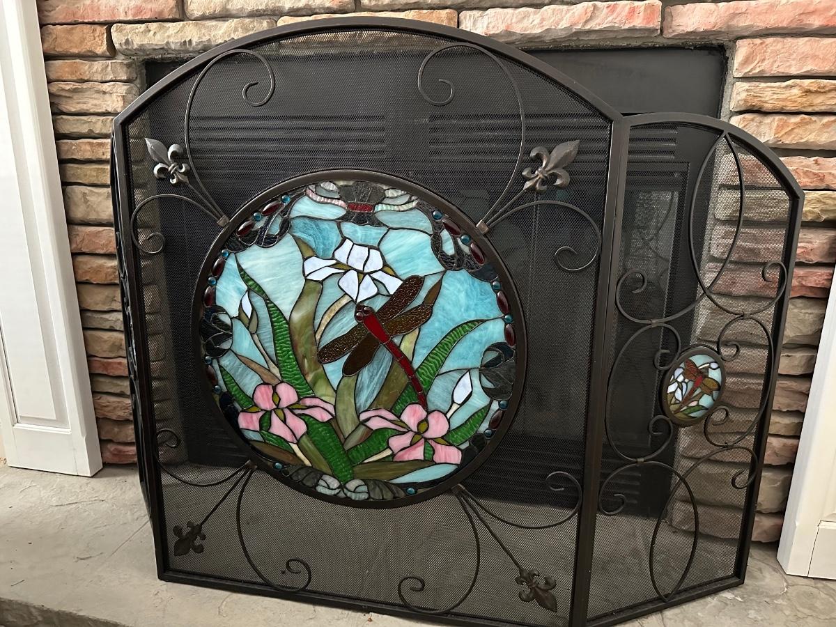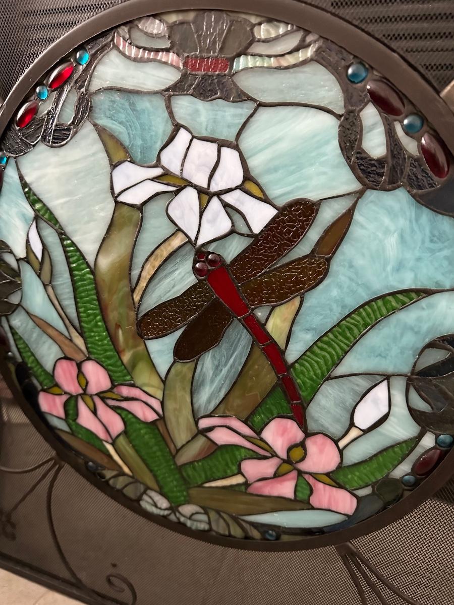 DRAGON FLY DECORATED FIRE SCREEN, 49X32, AS PICTURED
