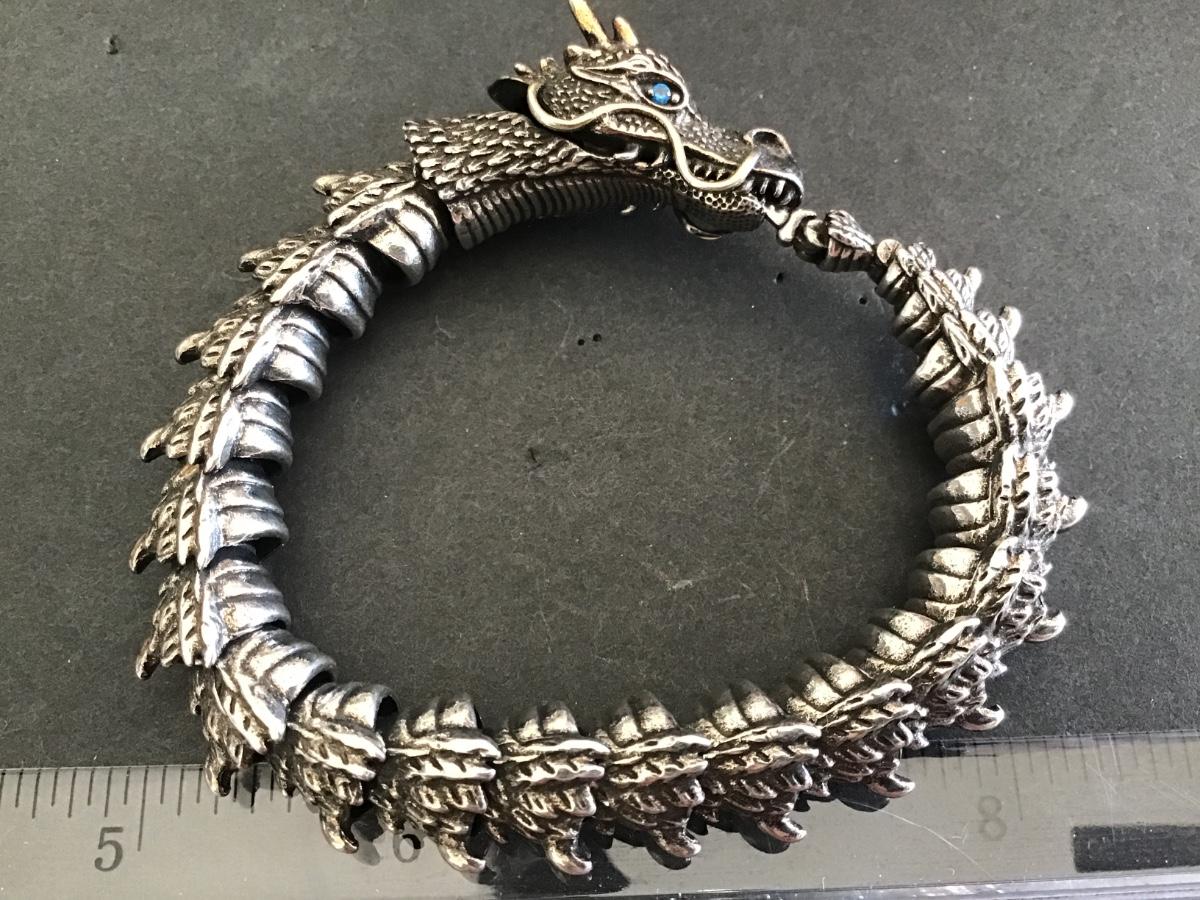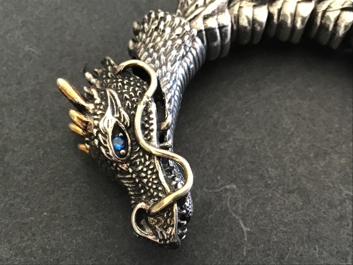 Dragon Gold Silver Tone Rhinestone Coil Bracelet