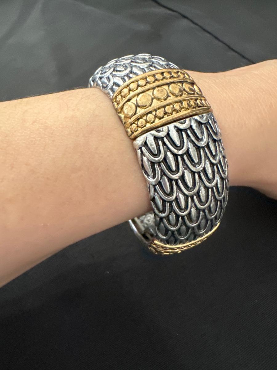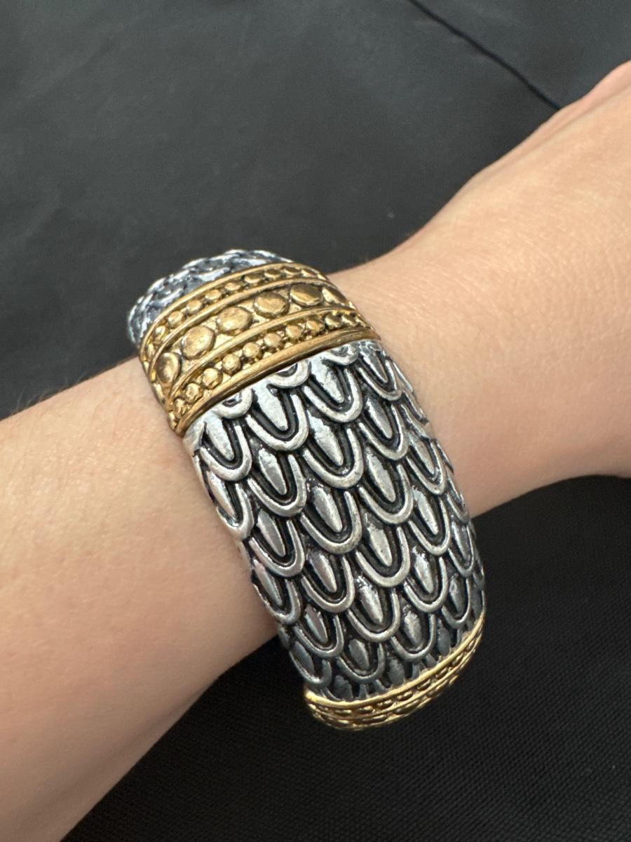 Dragon scale, silver toned, brass, toned, stretchy bracelet
