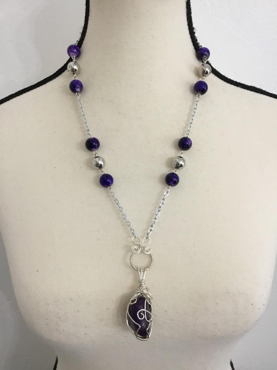 Dragon vein, agate pendant, silver tone, glass, bead, fashion, statement, necklace