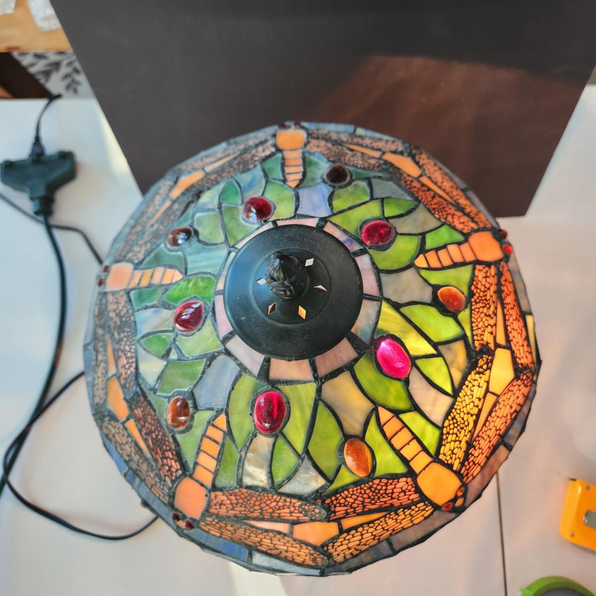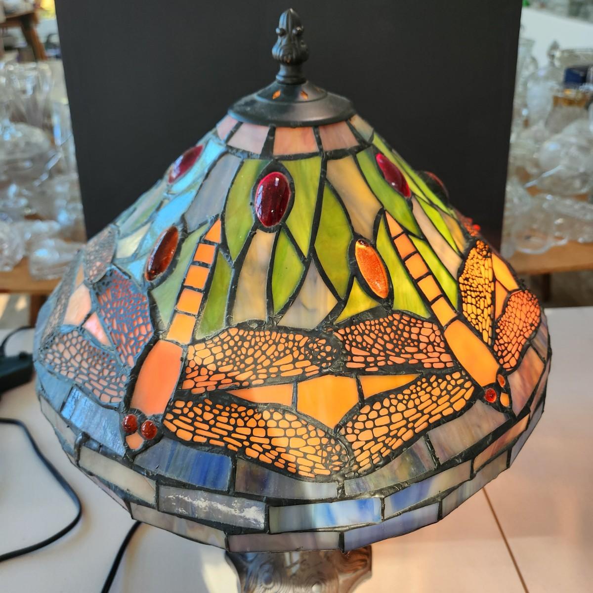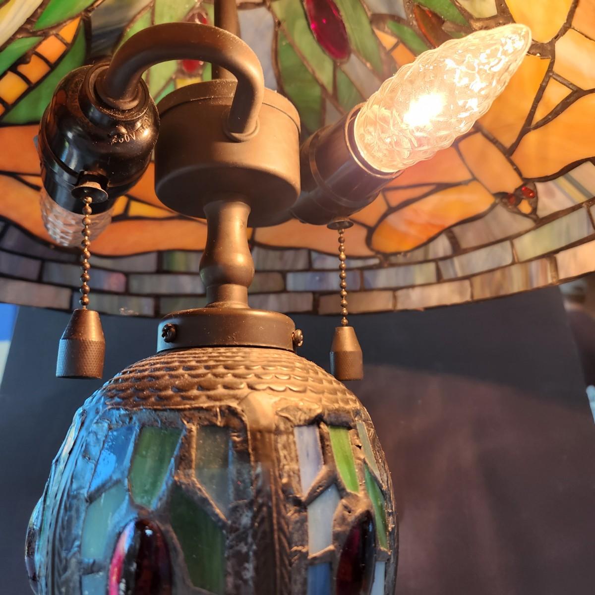 Dragonfly Stained Glass Table Lamp 2 Pull Chain Lights w Stained glass Base