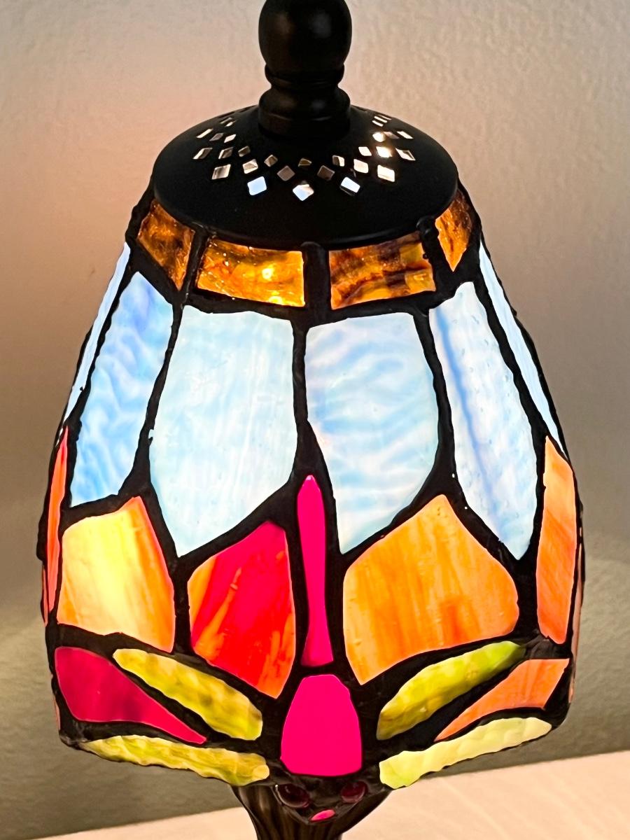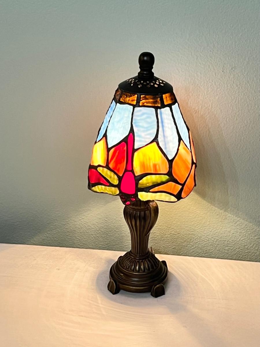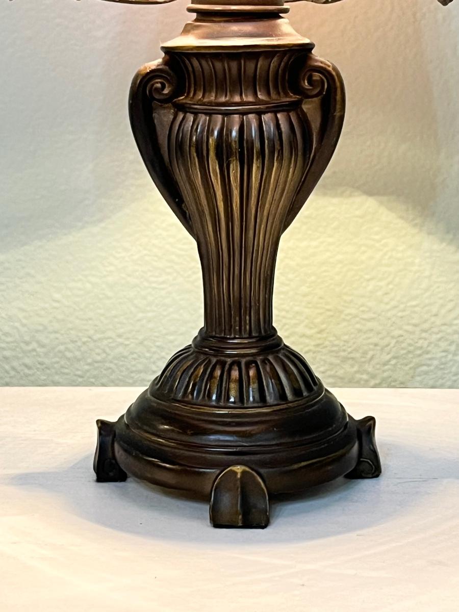 Bronze metal finish base ~ 12” H x 5” Round lampshade