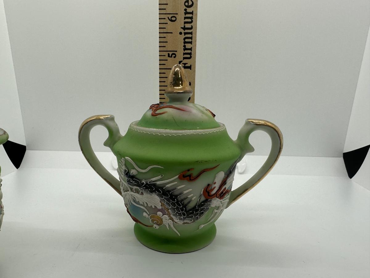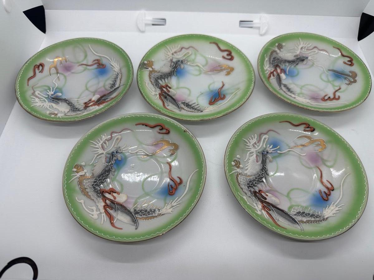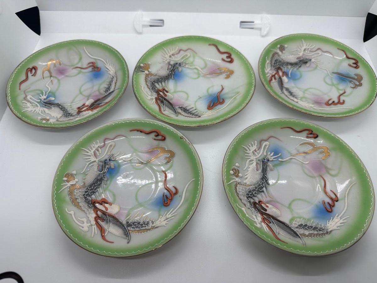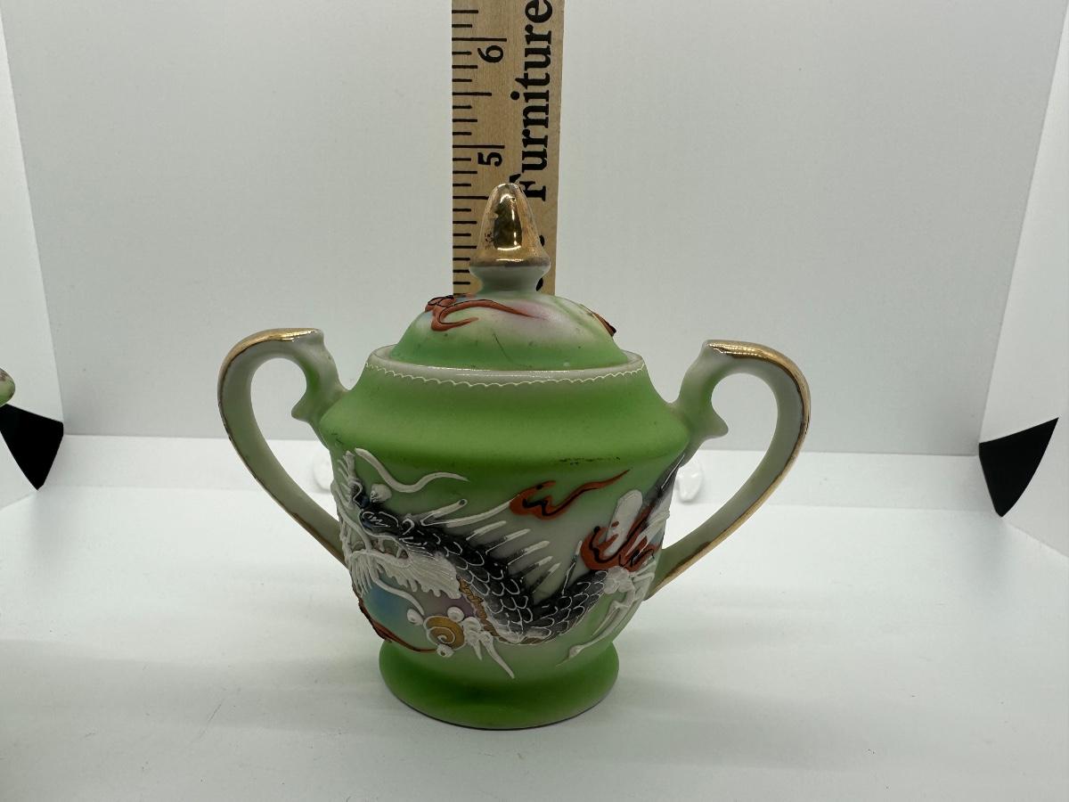 Dragonware Tea Set Betsons Green Hand Painted Moriage 14 piece set Japan