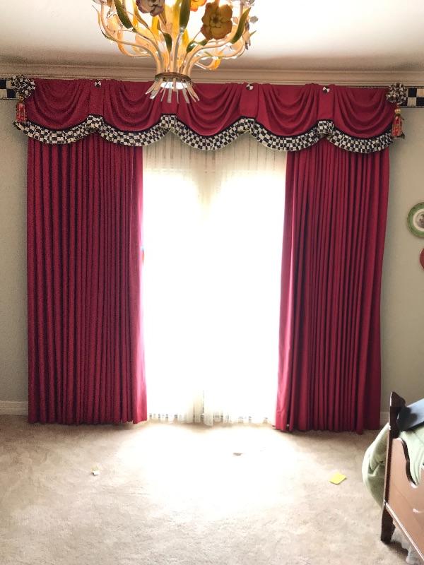 Drapery & lace sheers match the Half - Tester Bed. Buy it separately or buy it to go with the half - tester bed. These linen curtains have been expertly made with black out fabric. The cornice is draped with ???? Sheers are a beautiful quality. All the hardware come with the drapes. Curtains measure 8 ft drop by 9 ft wide.