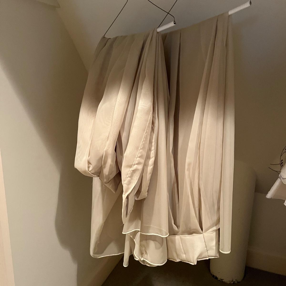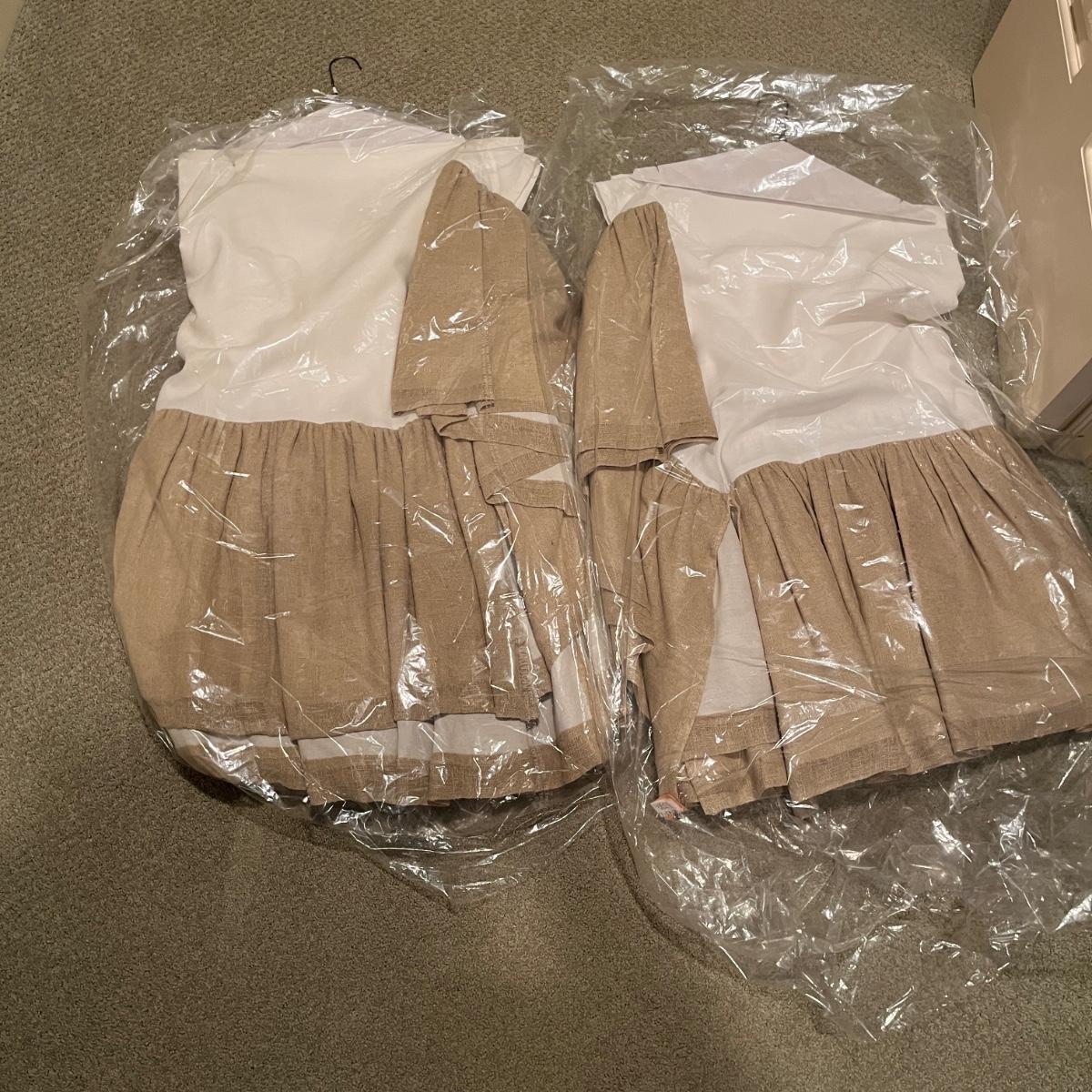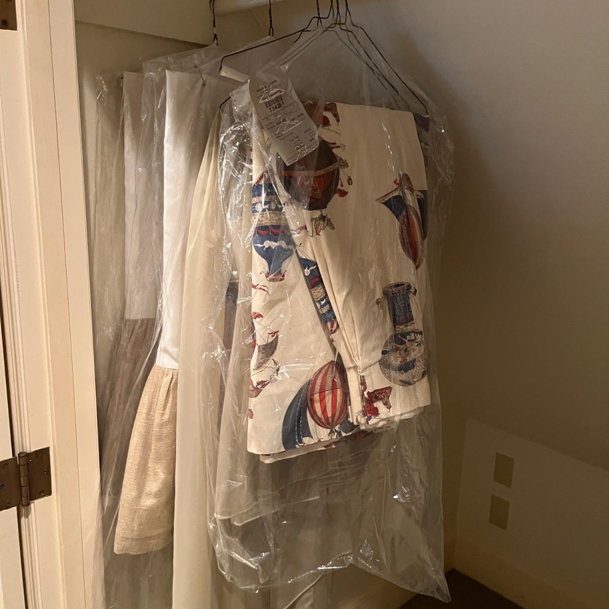 Lot includes two lined drapes that measure 60” x 44”H, two sheet drapes that measure 46” x 62”H. and two twin bed skirts.