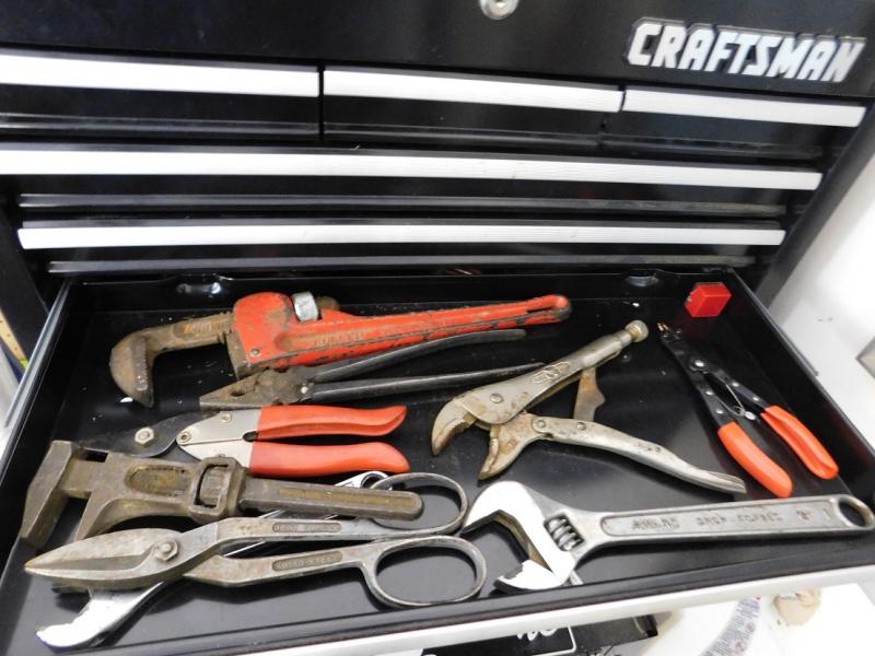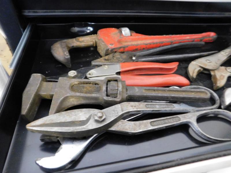 Drawer Four of Tools Including Pipe Wrench and Metal Snips