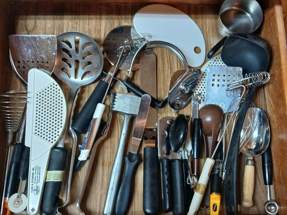 Drawer of Kitchen Utensils - Dough blender - Spatulas - Pizza cutter - and much more