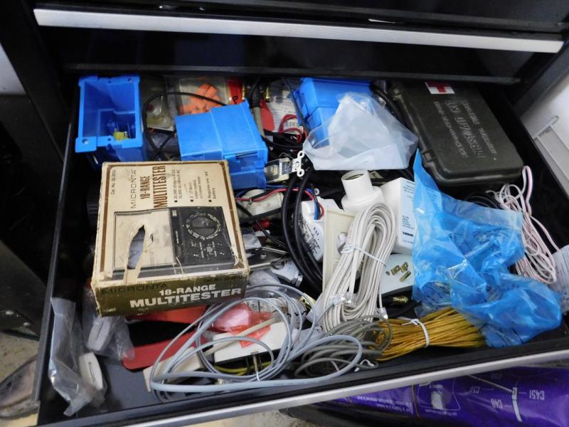 Drawer Ten of Tools Including Bits, Fasteners, Electrical Accessories