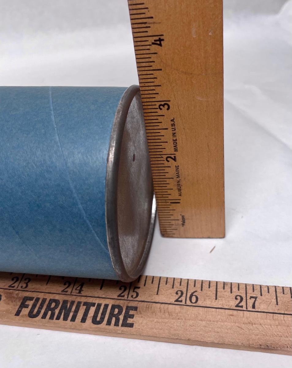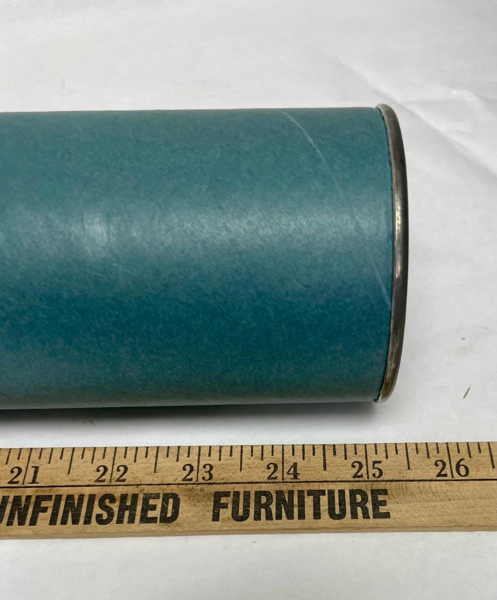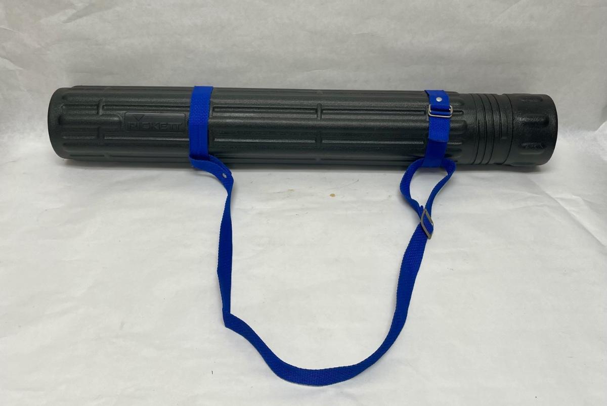 Screw-on cap. hard plastic material. Approx. 26" long x 4" diameter. Cardboard inner tube with cap. Perfect for transporting large rolled-up drawings or blueprints.