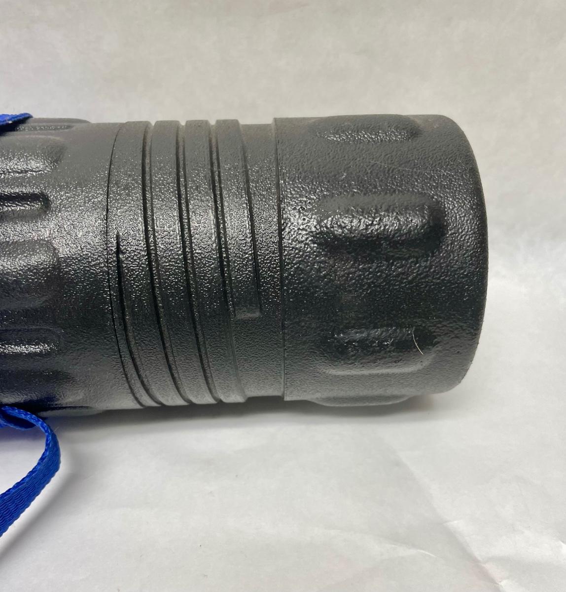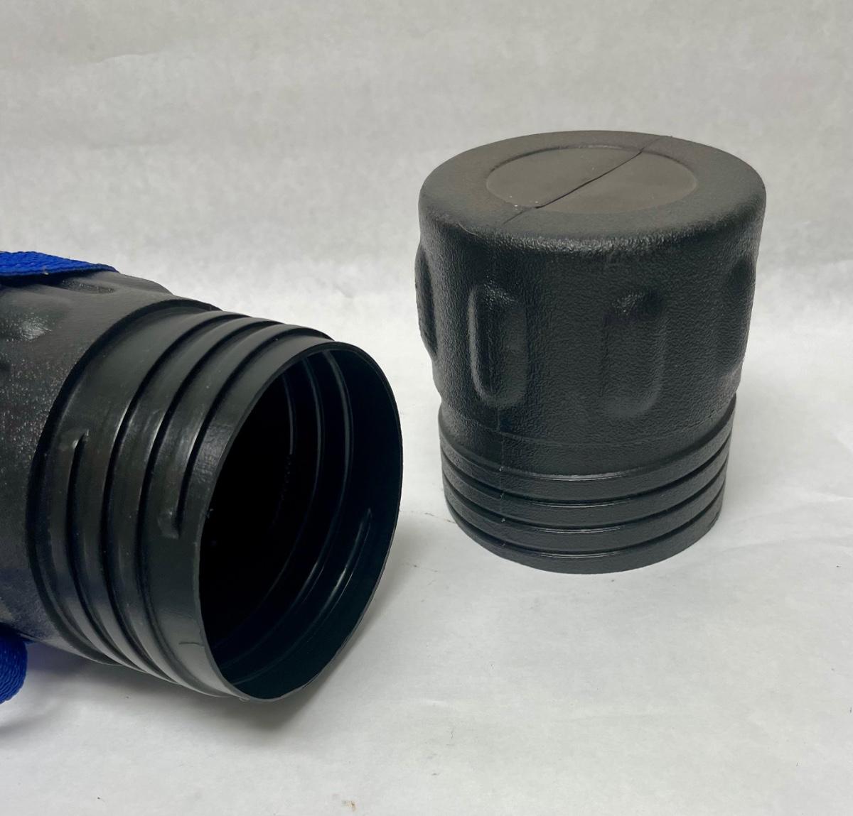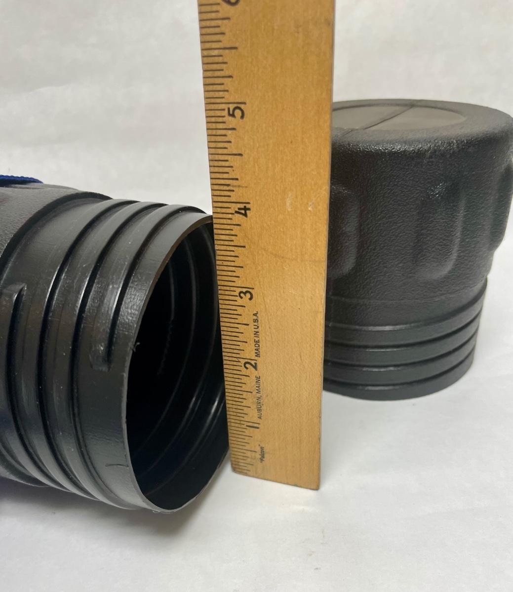 Screw-on cap. hard plastic material. Approx. 26" long x 4" diameter. Cardboard inner tube with cap. Perfect for transporting large rolled-up drawings or blueprints.