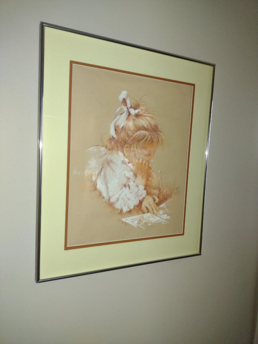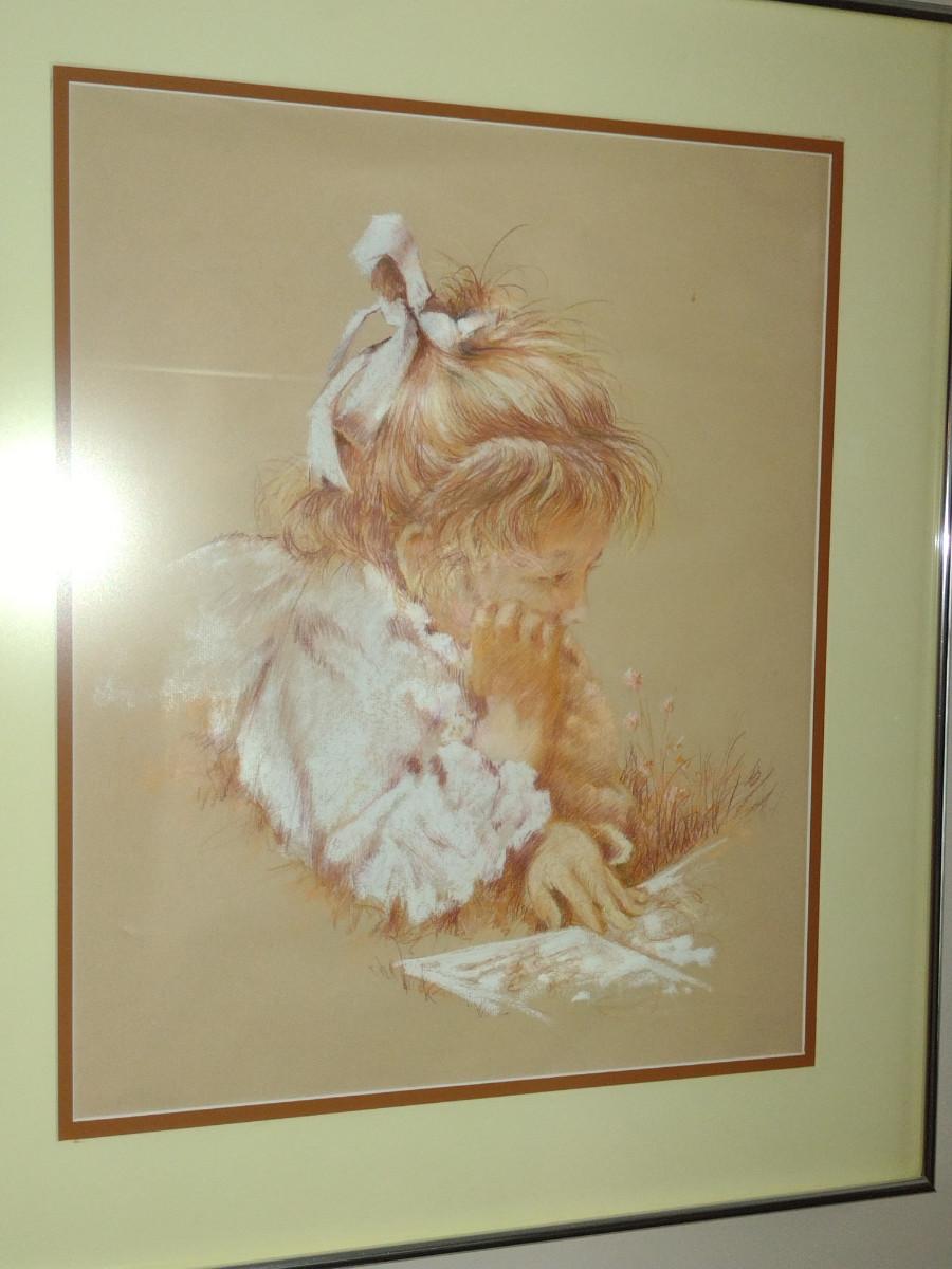 Drawing of Young Lady Reading Framed Under Glass- Approx 21" x 25".