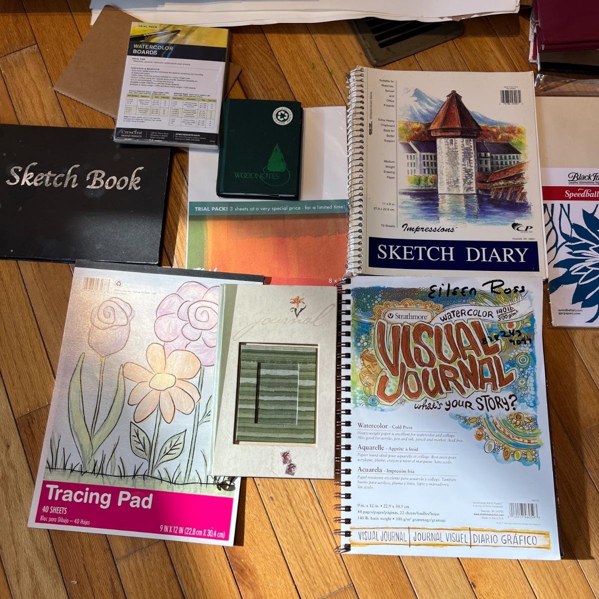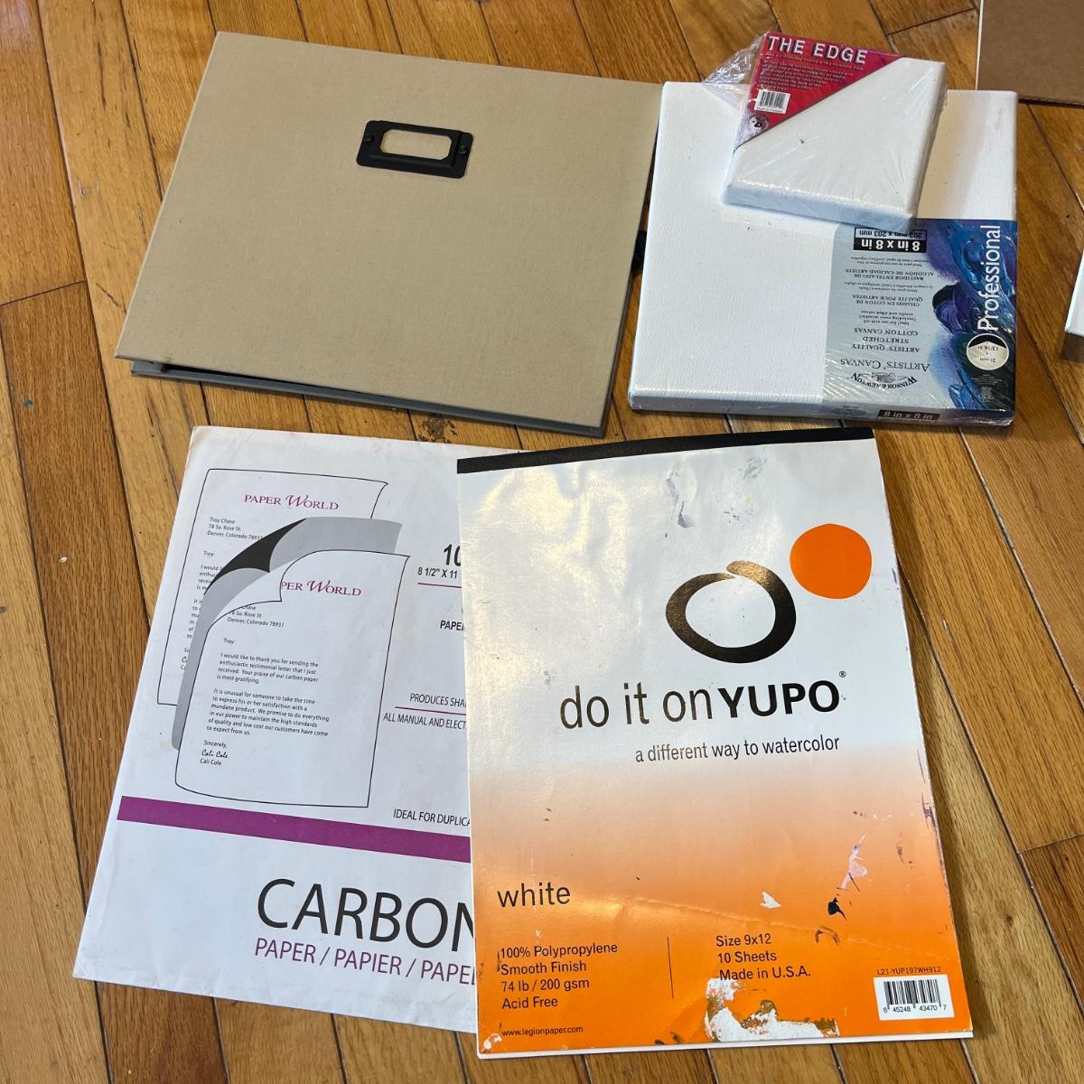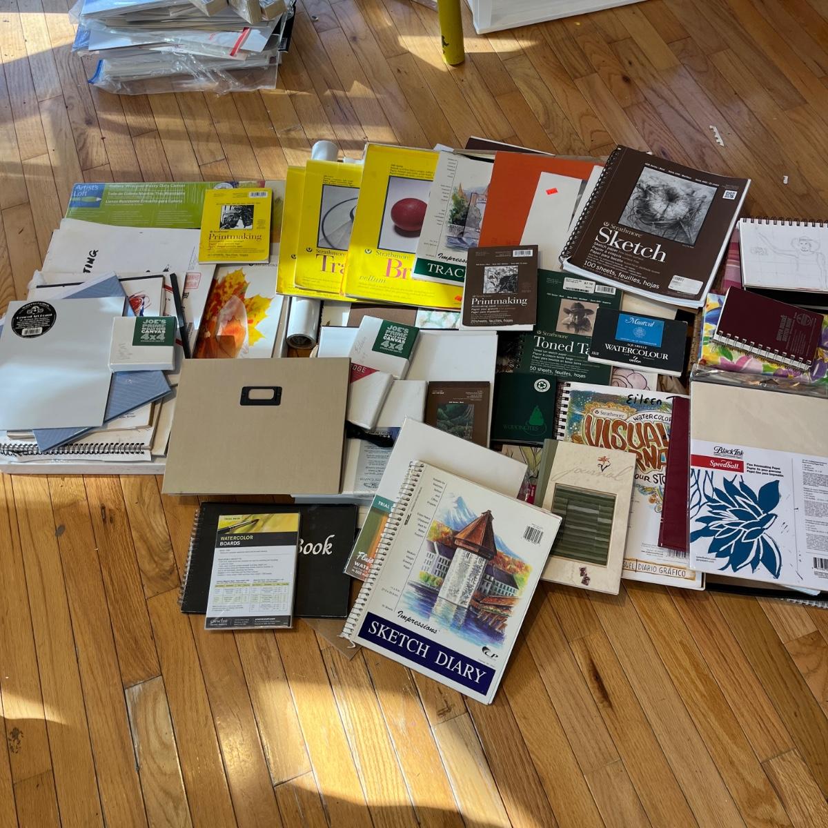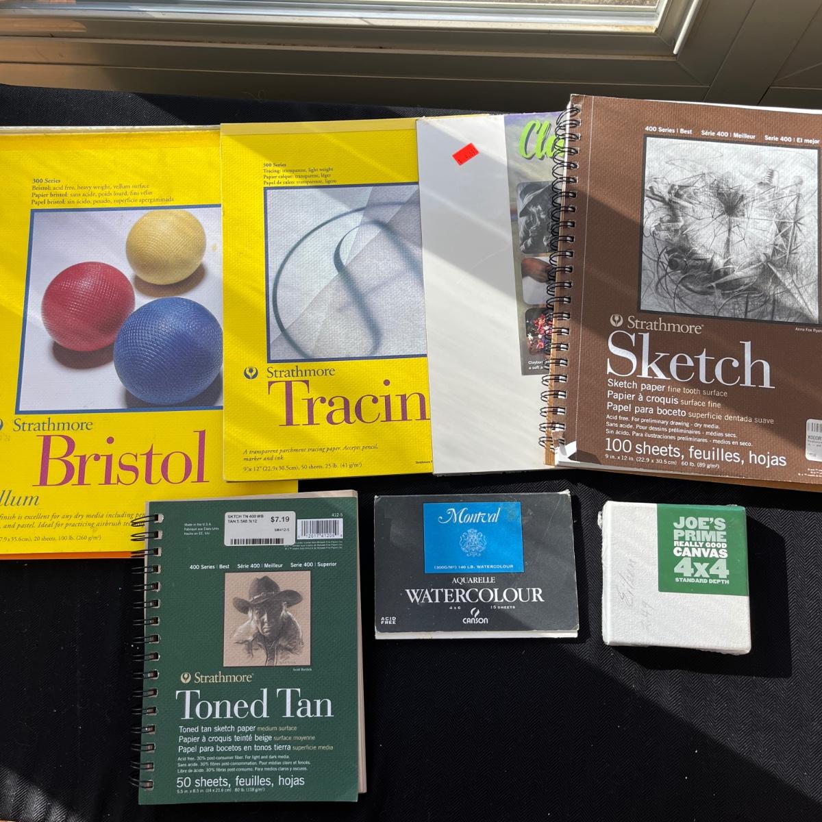 Lot includes a selection of tracing paper, drawing paper, sketching paper, graph paper, canvas, watercolor paper, nylon carrying bag and more. Largest paper measures 22” x 31”.