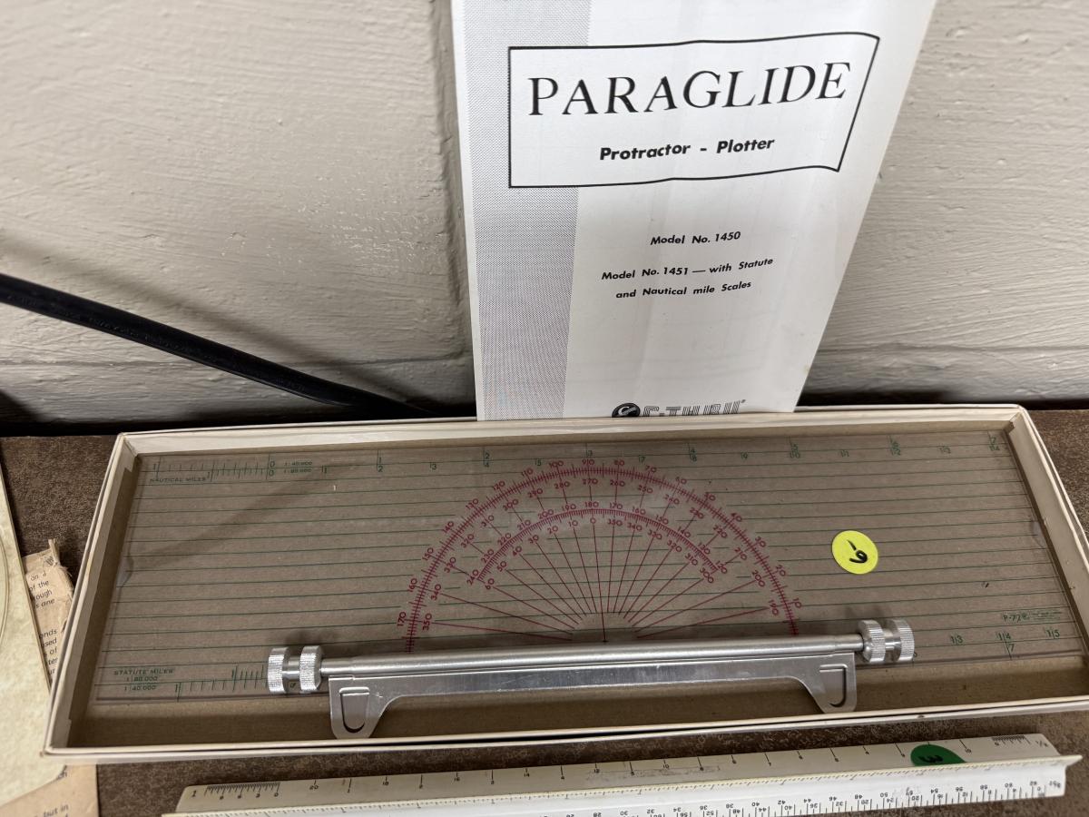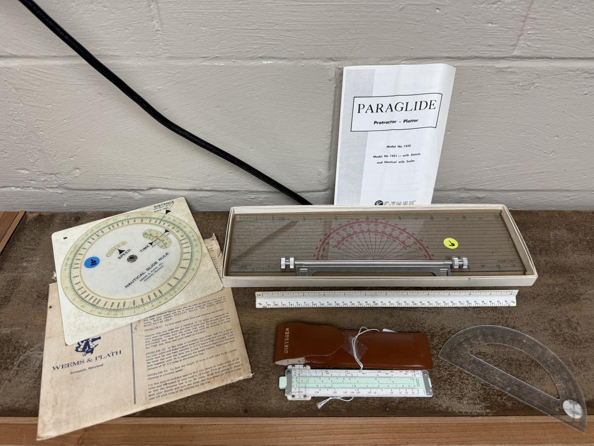 Weems & Plath nautical slide rule, paraglide protractor, ruler, Dietzgen slide ruler