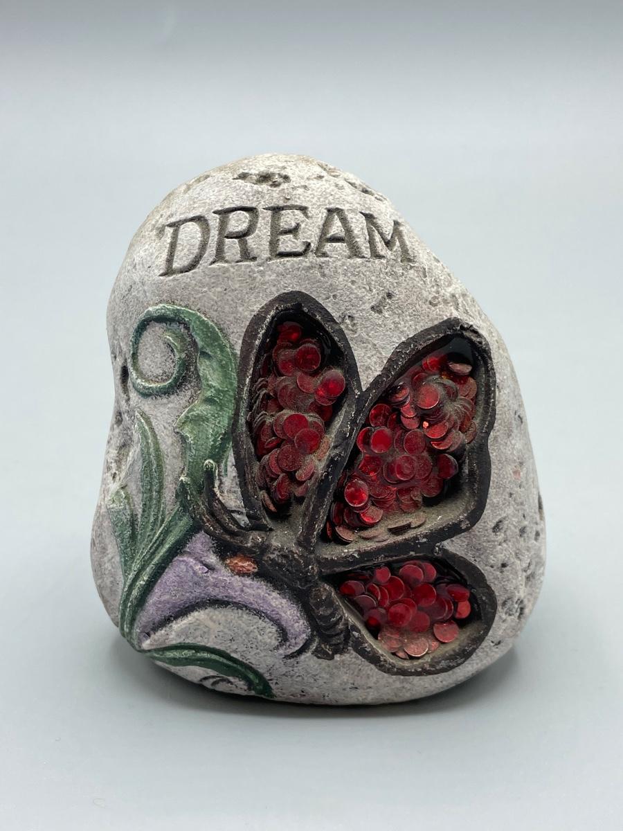 Both rocks are in great condition. One of the rocks reads “dream” and has a picture of a butterfly on the front. The other rock says “wish” and has a picture of a dragonfly. They can be used as indoor and outdoor decoration.