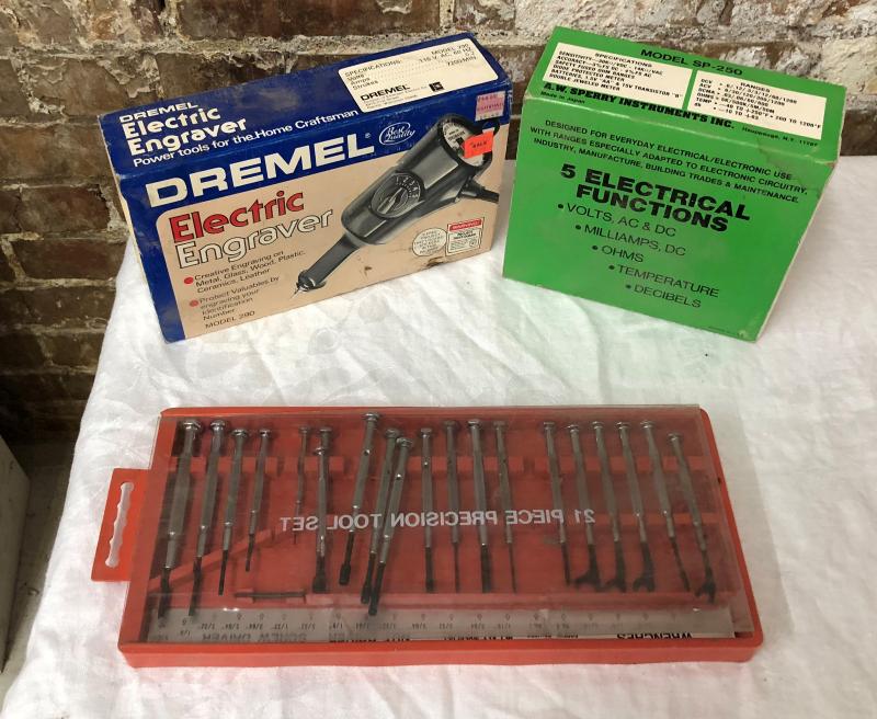 A Dremel Electric Engraver..Precision screwdrivers and a Voltmeter offered in this lot..Good used condition...