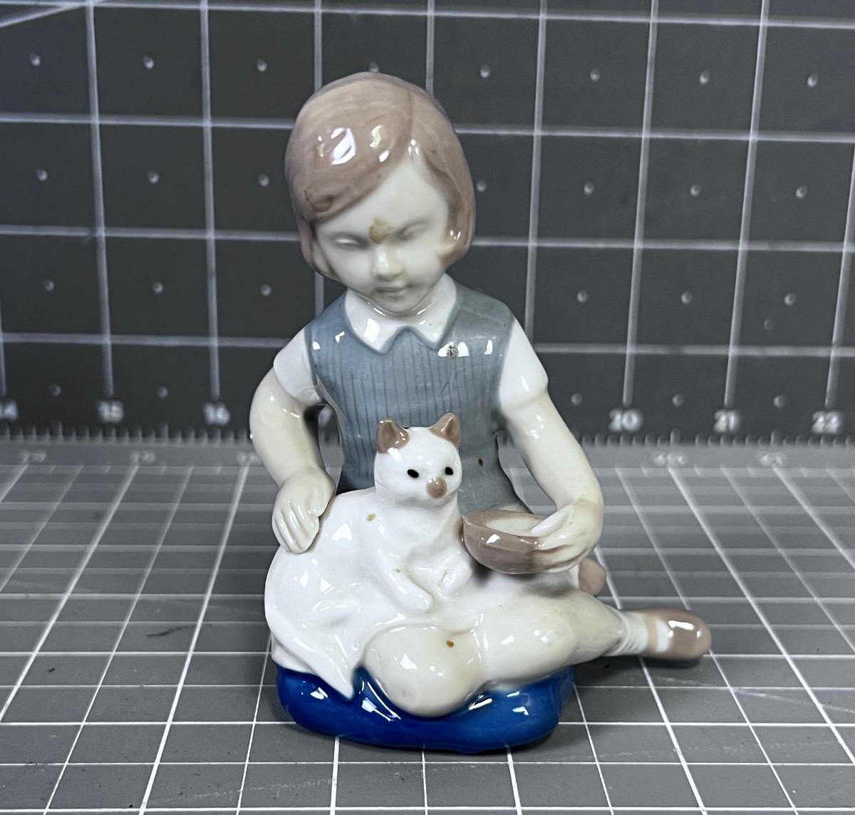 Dresden or Meissen (HAS 2 Crossed Sword Symbol on Bottom) Figurine: Girl & Cat
