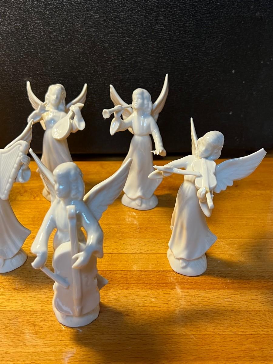 Dresden Porcelain Angels w/ Instruments- set of 7