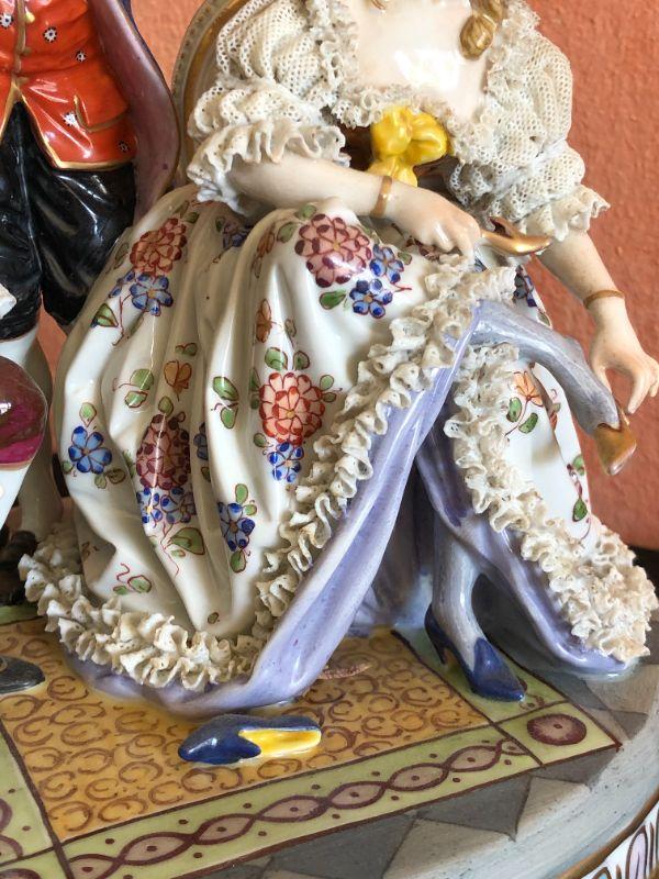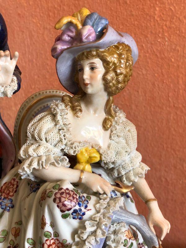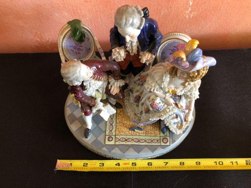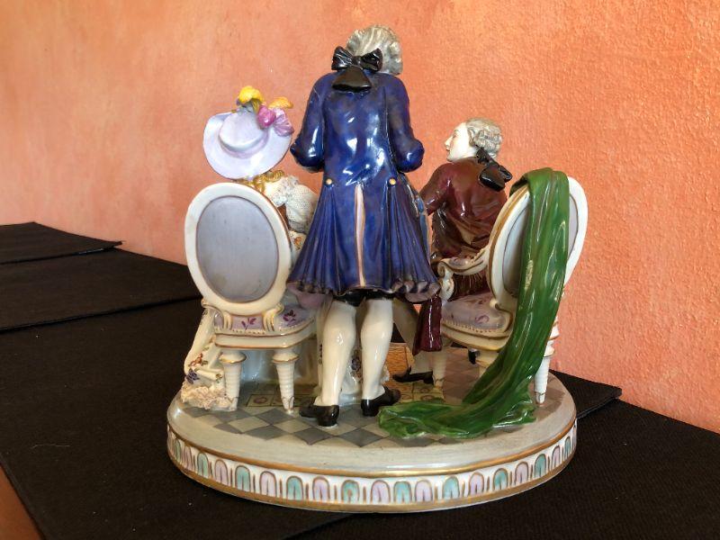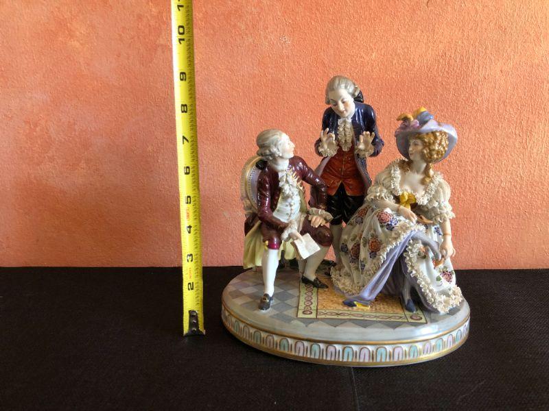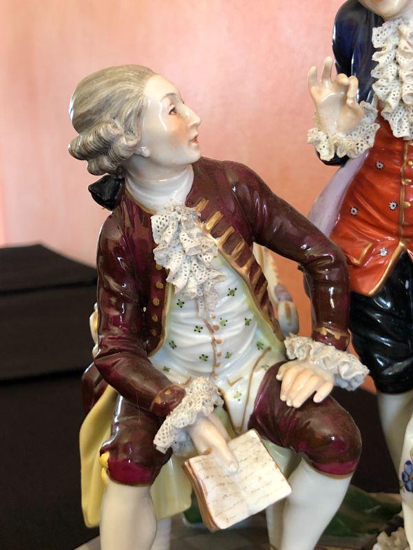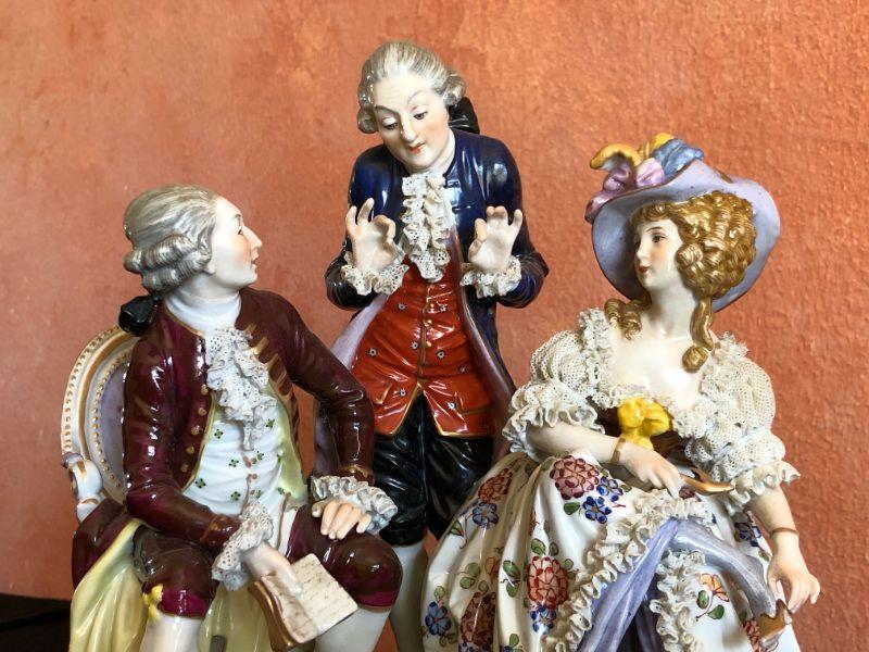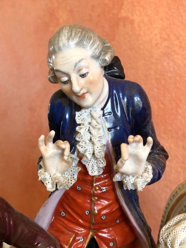 Dresden Porcelain Figural Conversational Trio of Two Gentlemen and a Lady