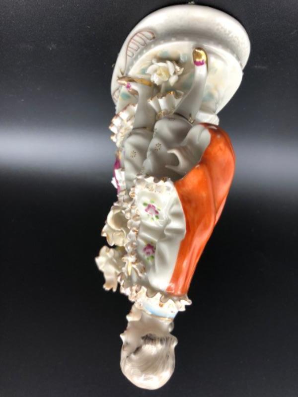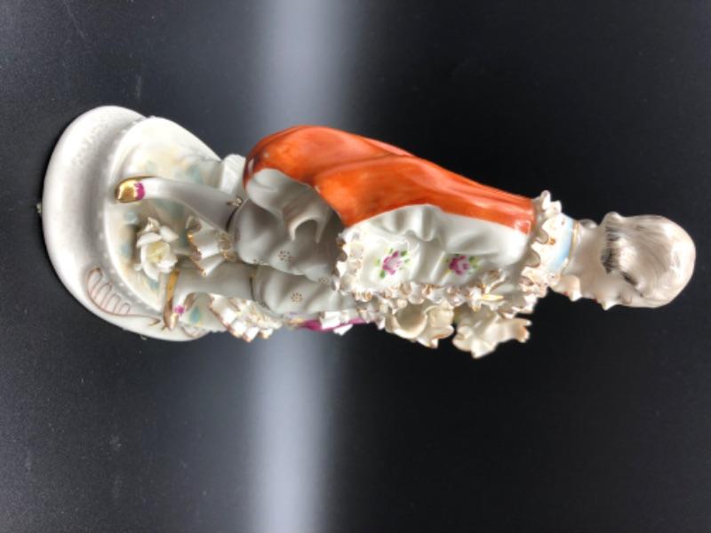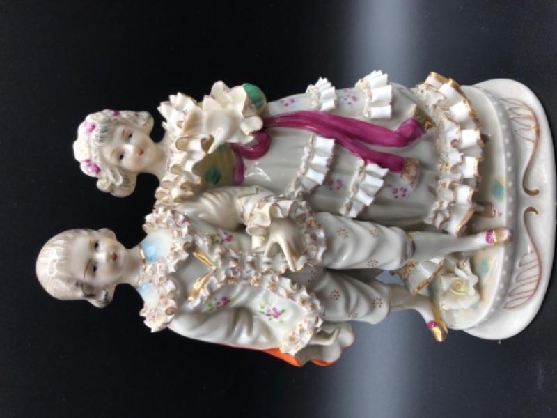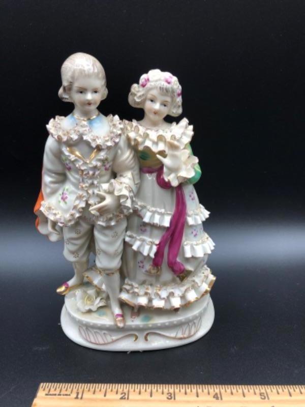 Dresden site style ceramic porcelain figurine couple boy and girl arm in arm